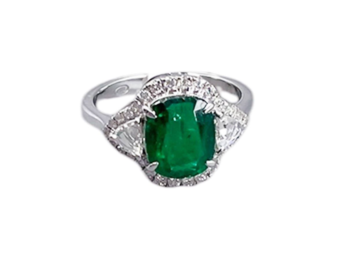 18k Zambian Emerald Ring with Diamonds