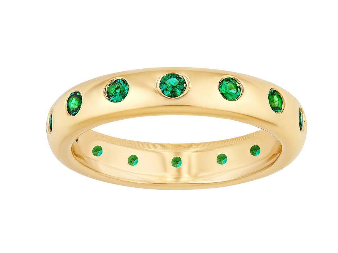 14k Band Ring with Round Emeralds