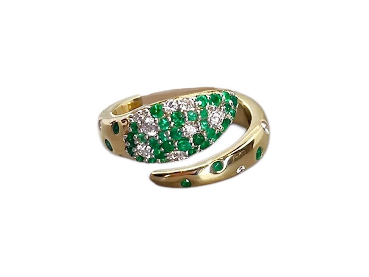 18k Snake Ring with Emeralds and Diamonds