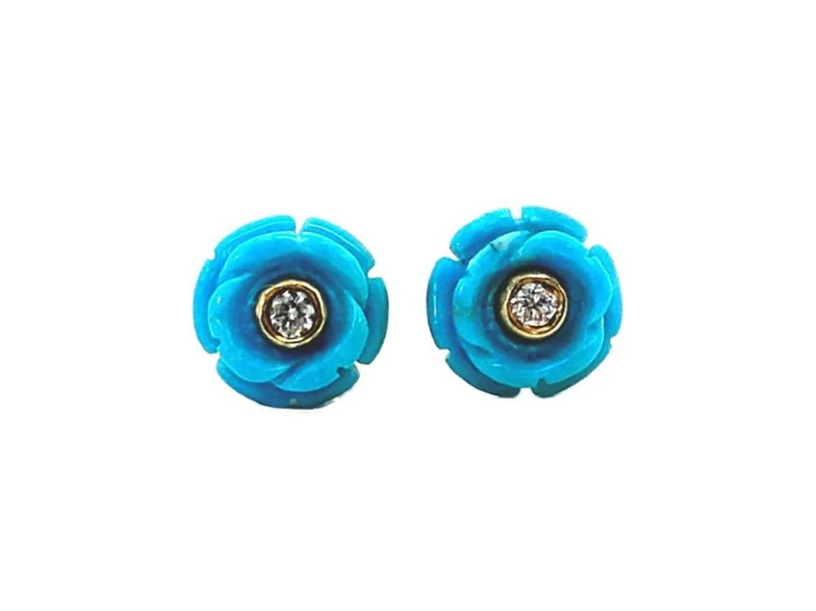 Turquoise and Diamond Stud Earrings
