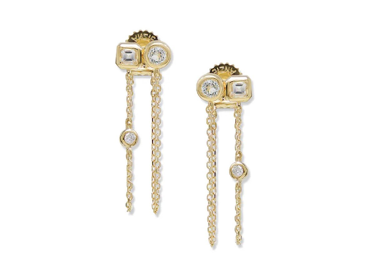 14k Double Chain Earrings with White Topaz and Diamonds