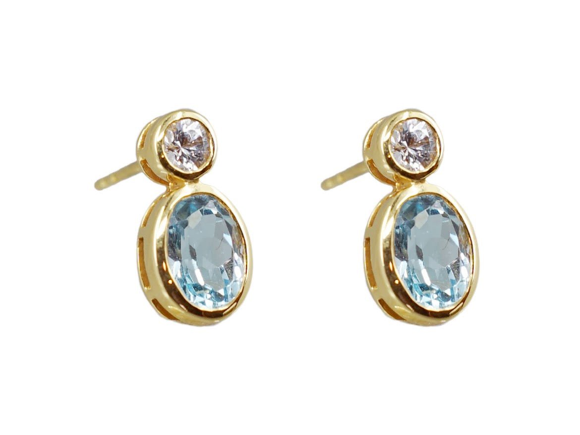 18k Blue Topaz Stud Earrings with White Sapphires