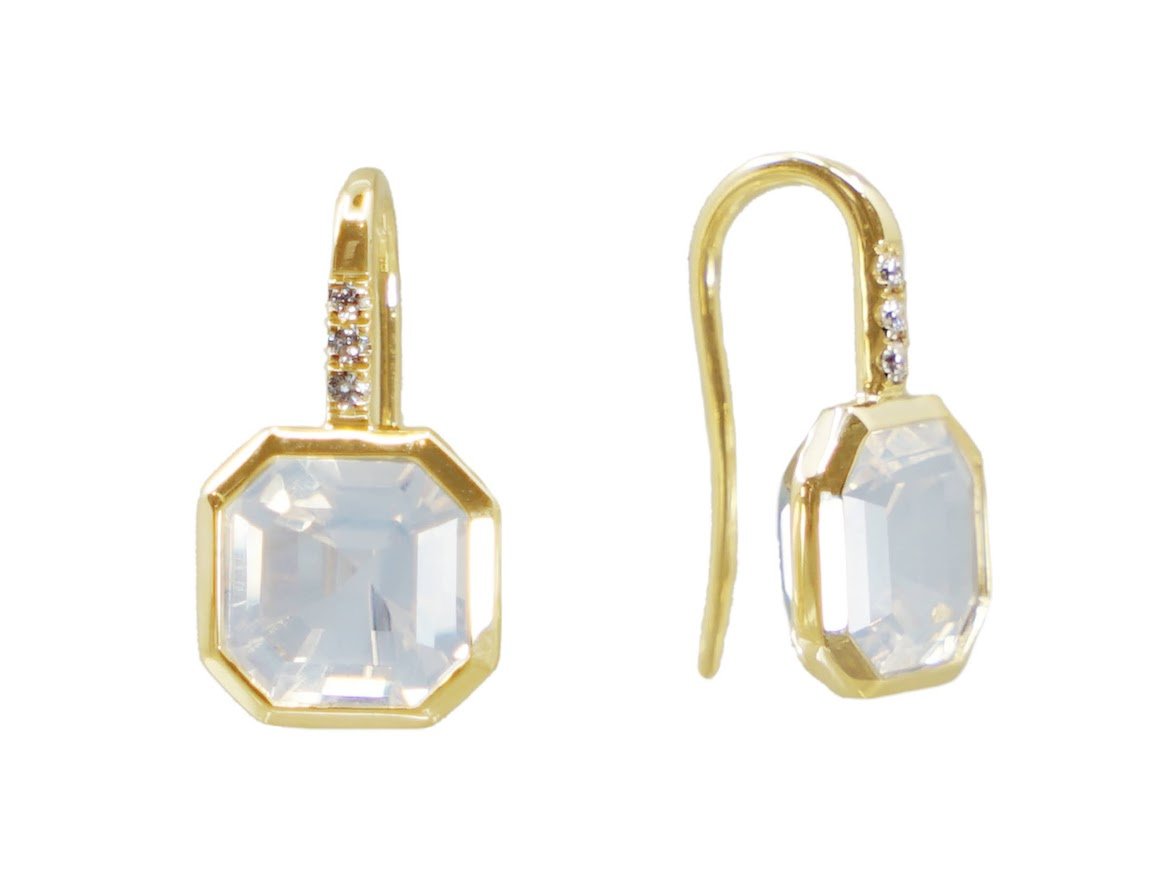 14k Asscher-Cut Moon Quartz Earrings