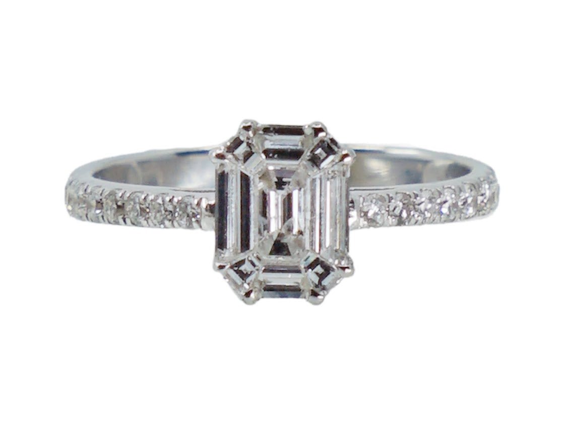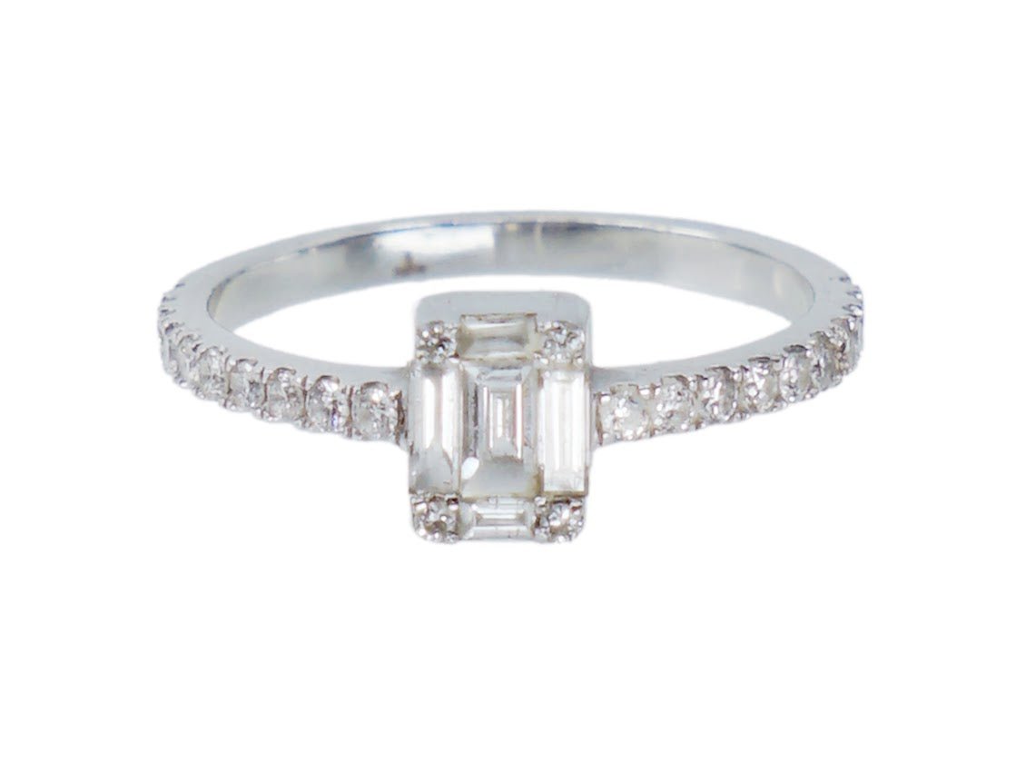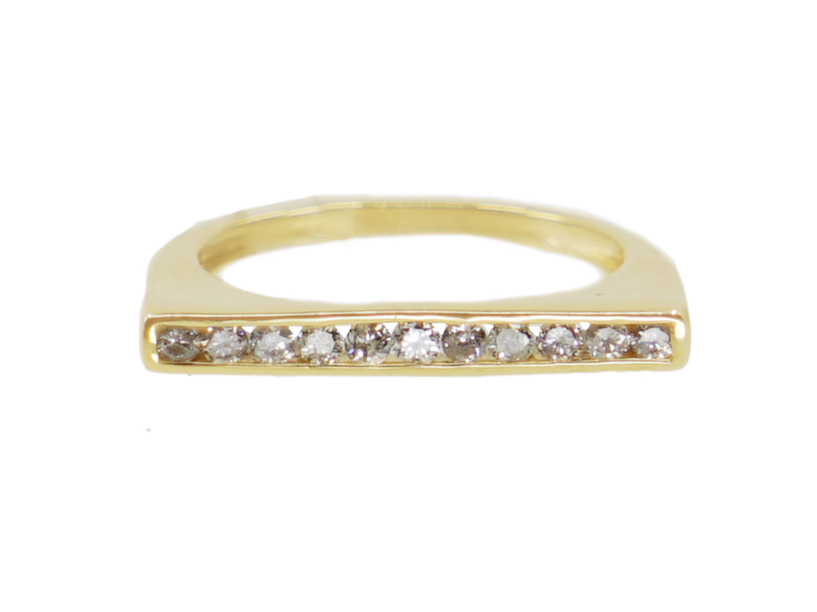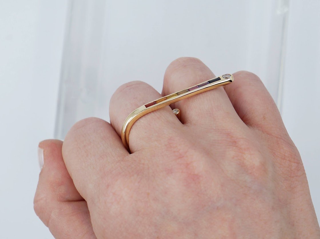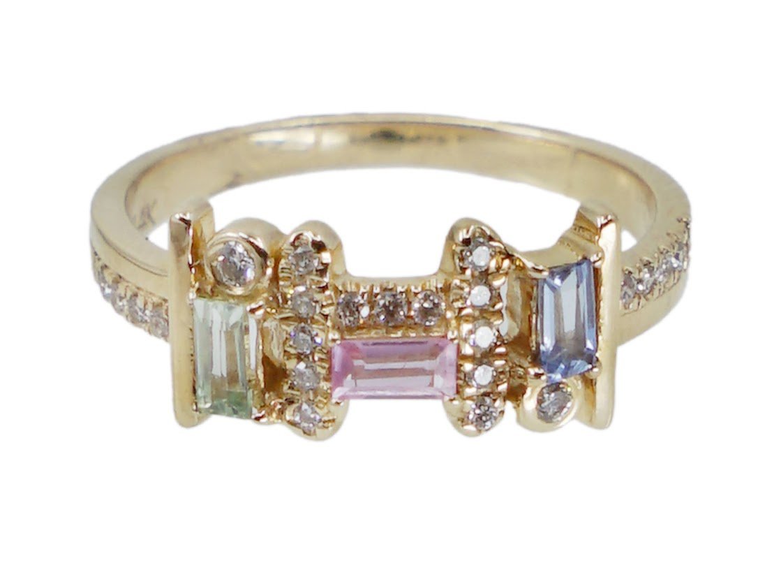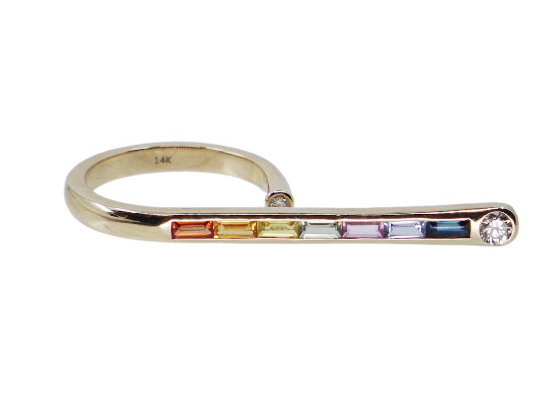 14k Gold, Diamond, and Multicolor Sapphire Baguette Bar Ring