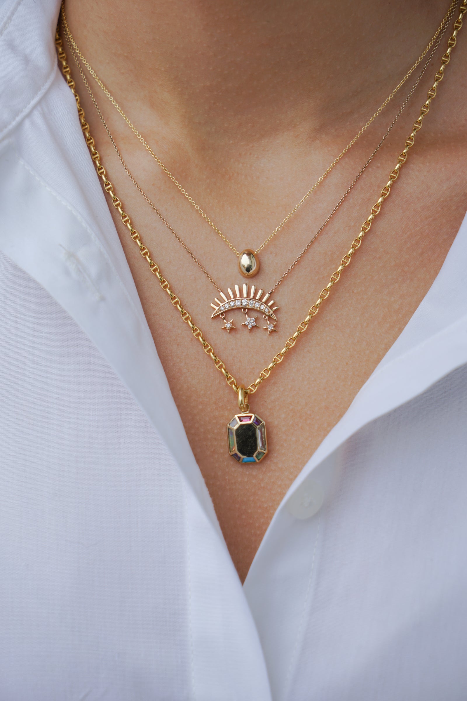 14k Yellow Gold Moon and Star Necklace with Diamonds
