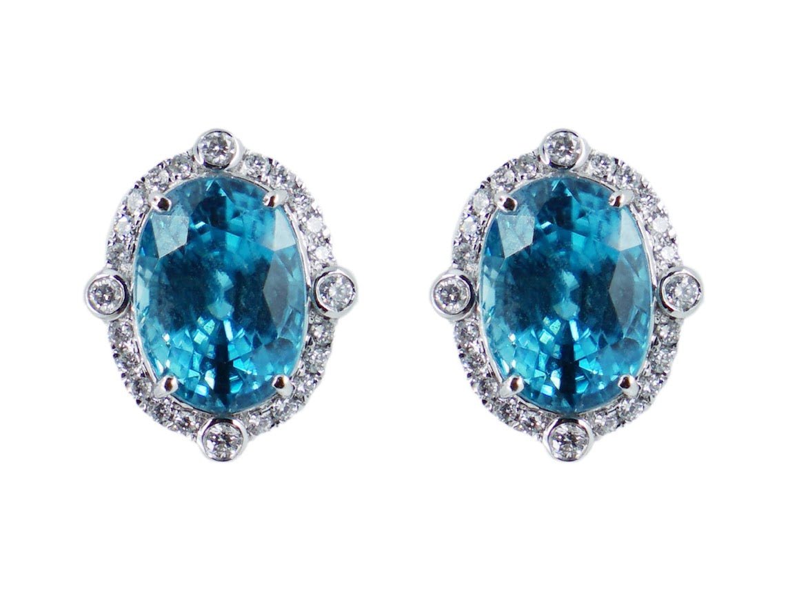 18k Diamond and Blue Zircon Oval Stud Earrings