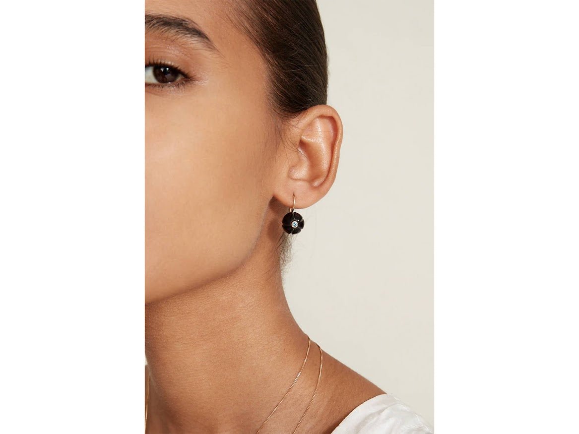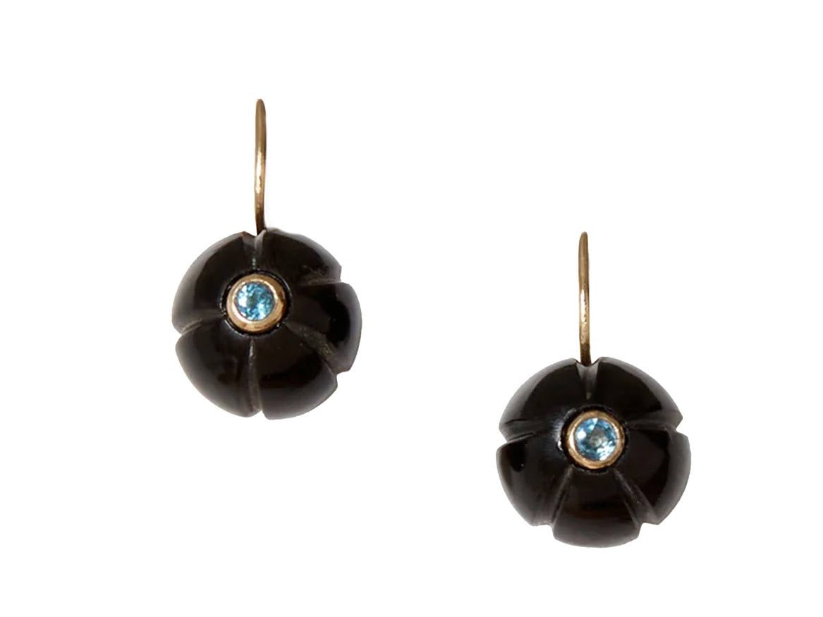 14k Dark Brown Horn Pumpkin Earrings with Diamonds