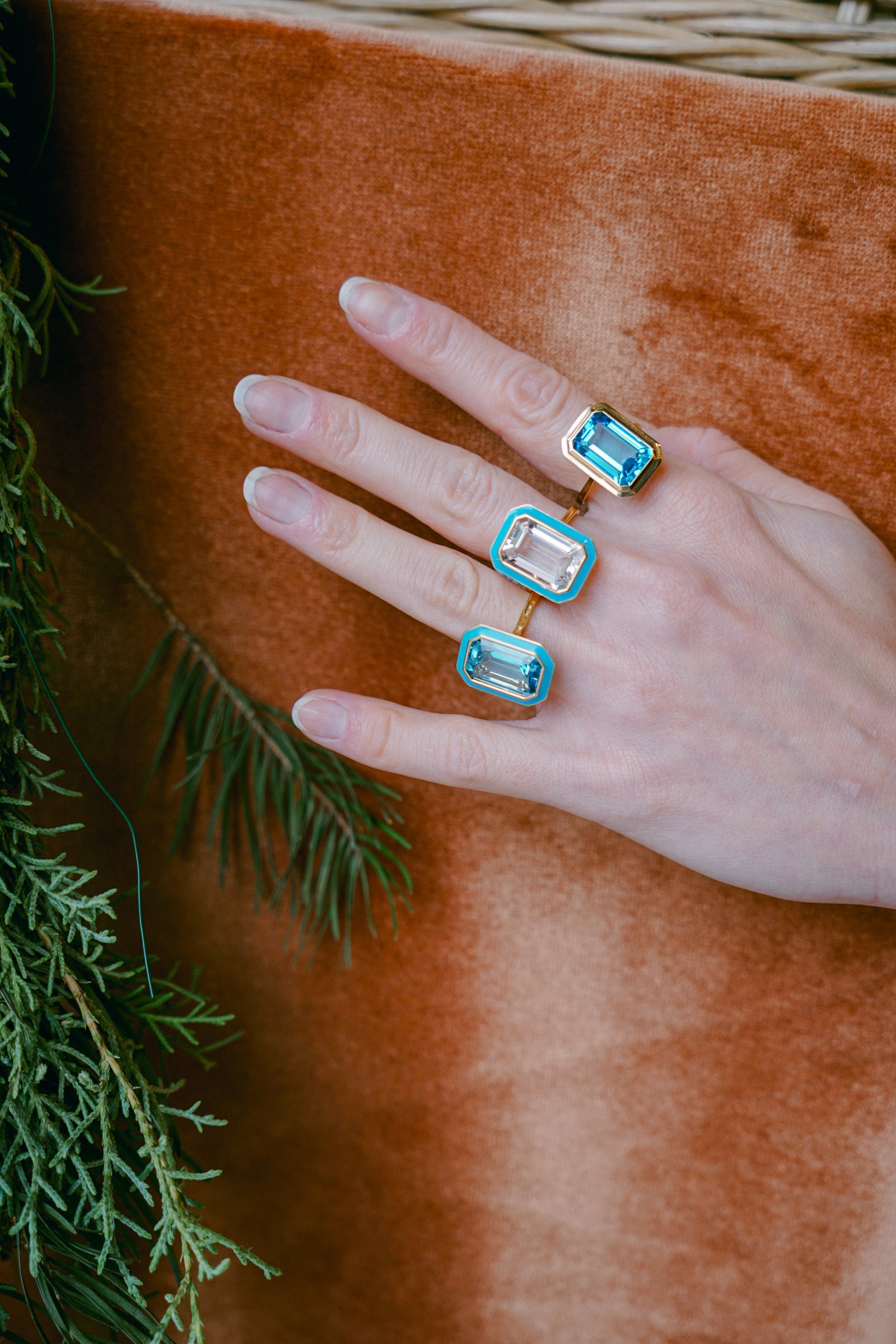 14k Piatto Chain Bracelet with Turquoise Enamel Beads