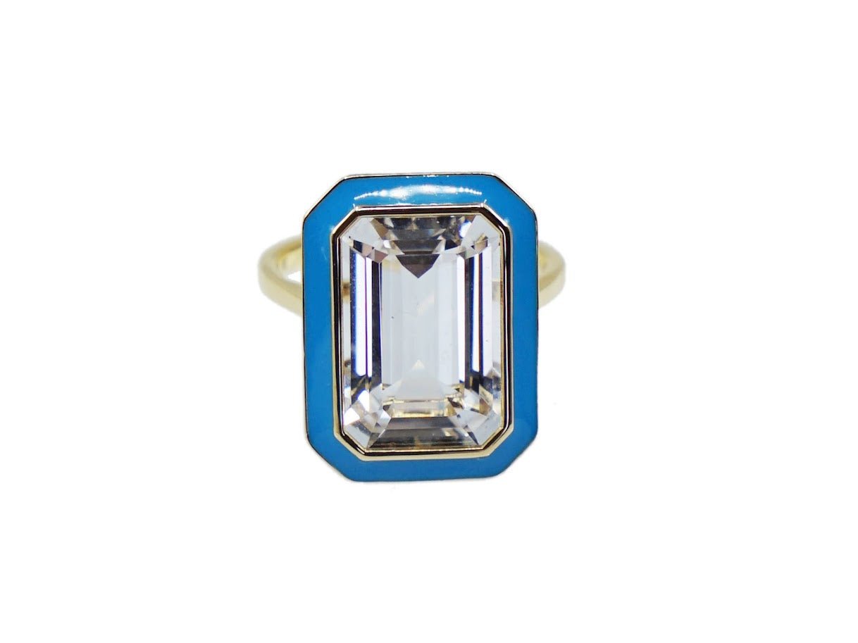 14k Piatto Chain Bracelet with Cobalt Enamel Beads