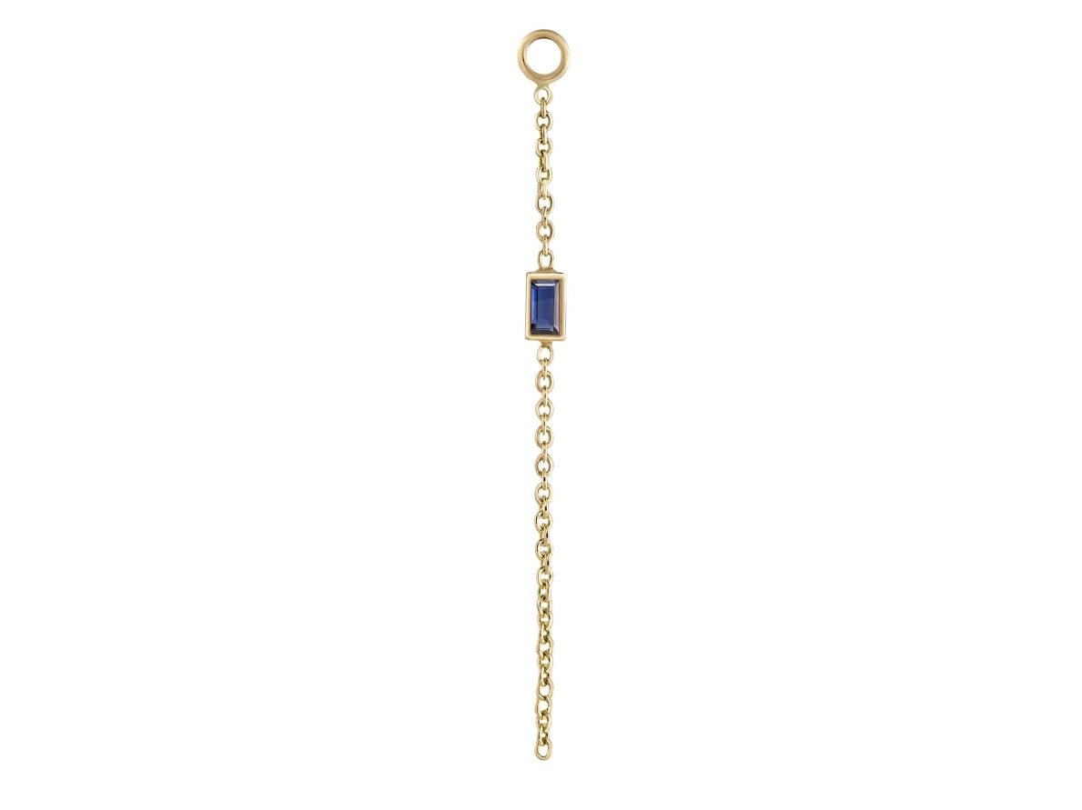9k Double Baguette Blue Sapphire Chain Drop Charm