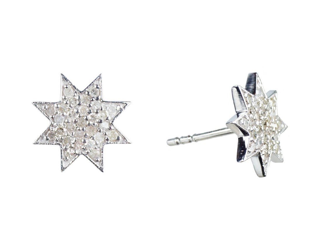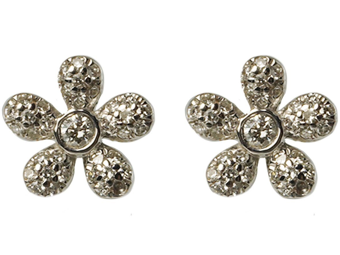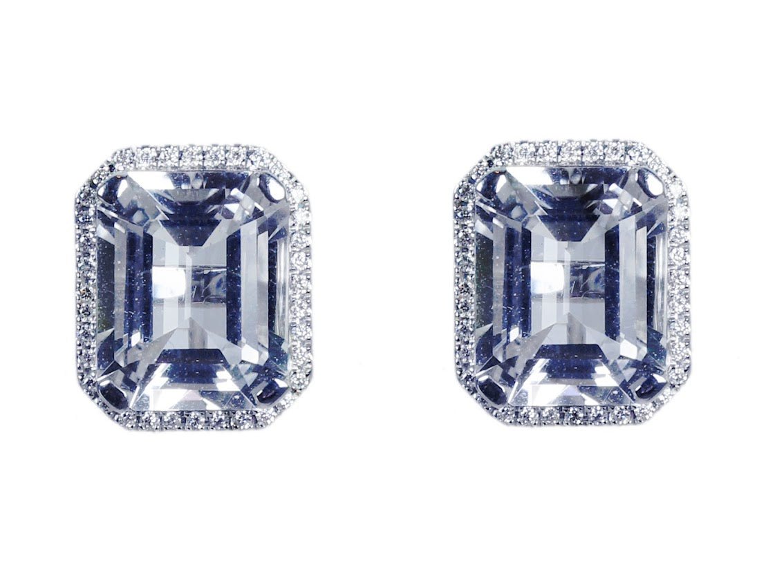 18k Emerald Cut Rock Crystal Studs with Diamonds