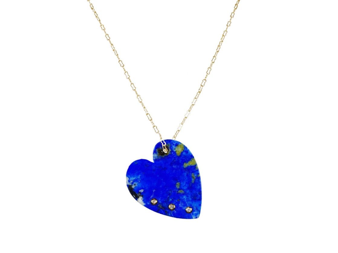 14k Lapis Heart Charm with Bezel Set White Topaz