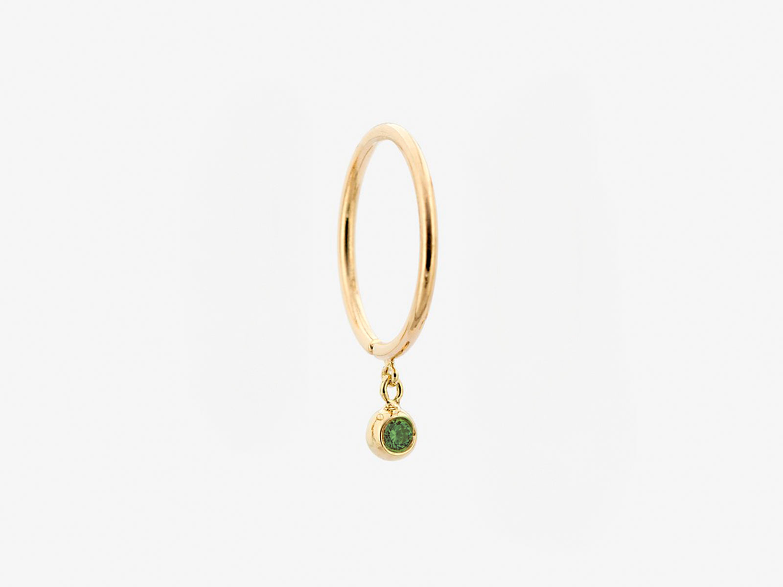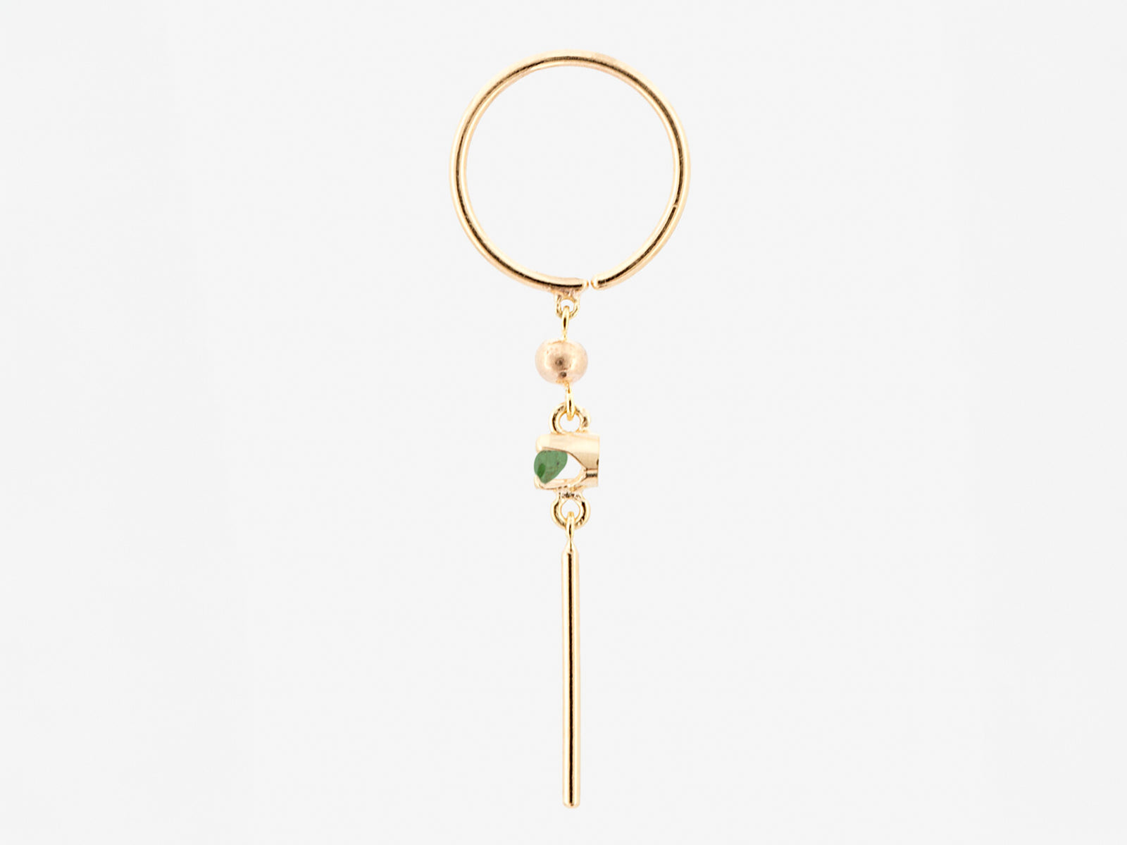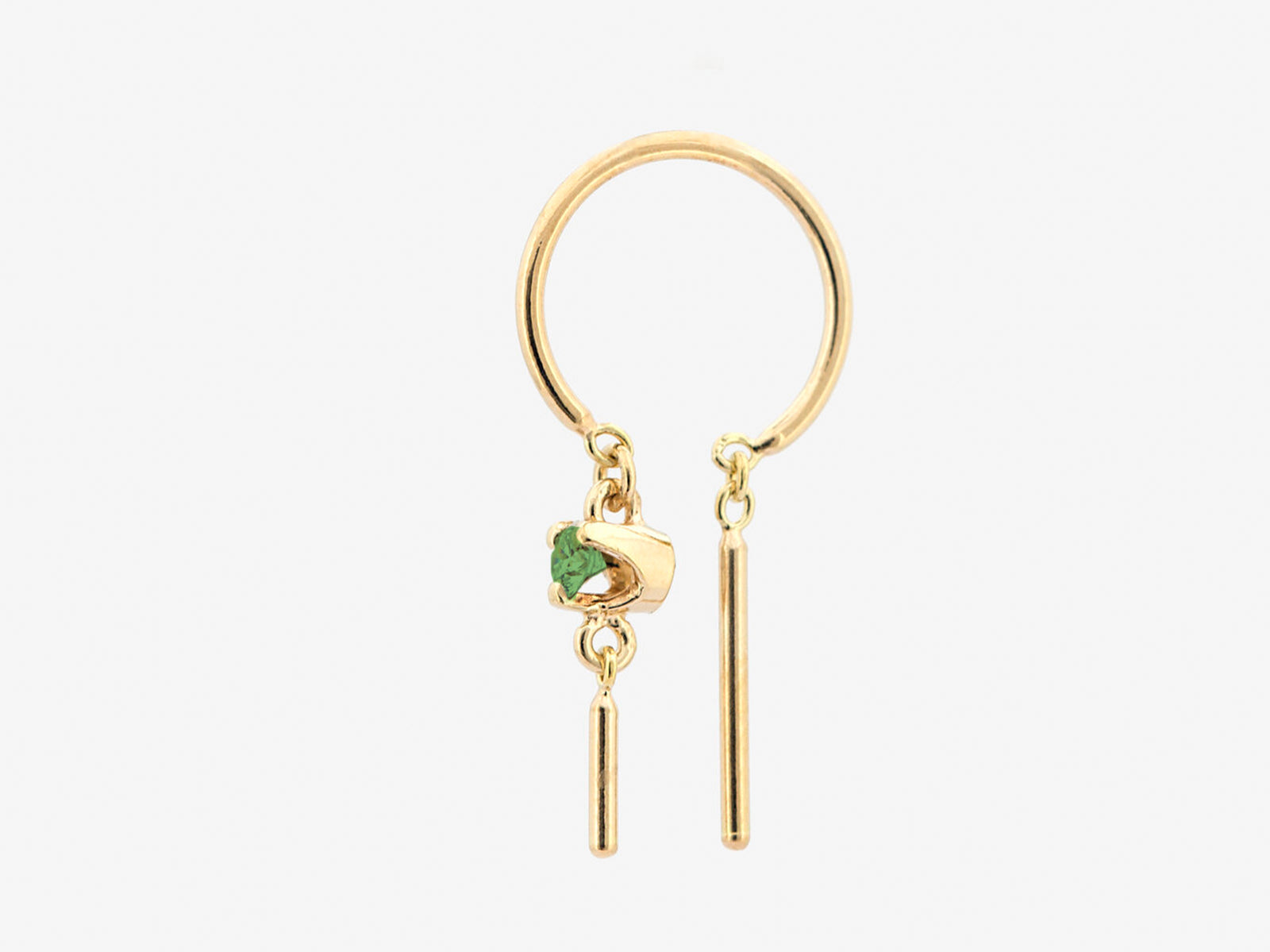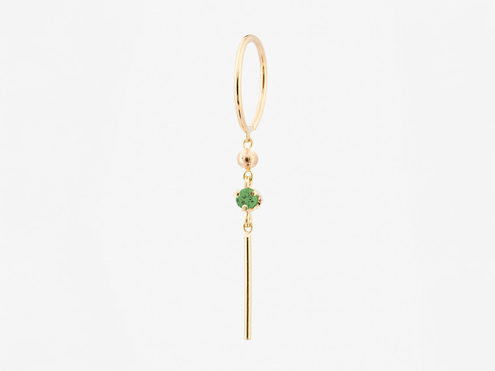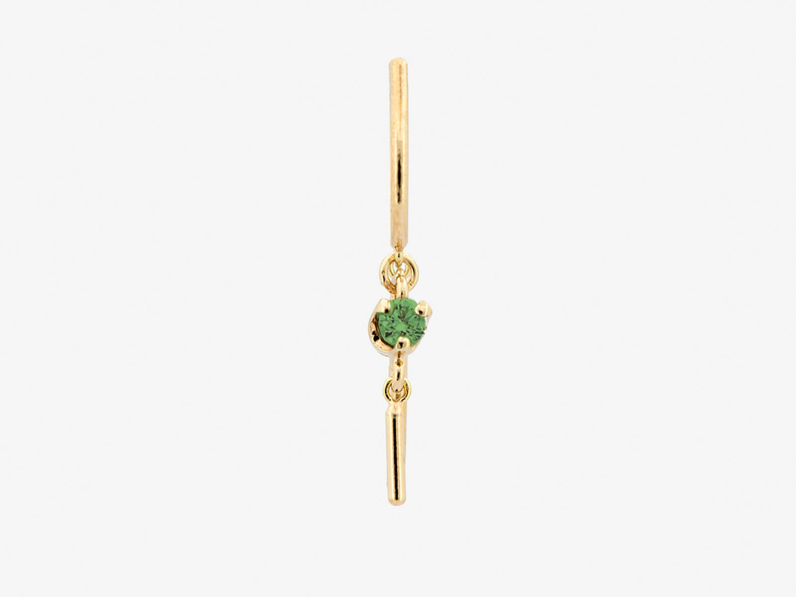 14k Small Threader-Style Dangling Hoop Earring with Emerald