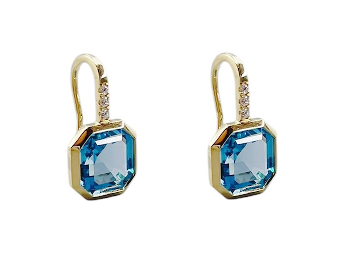 18k Wire Set Earrings with Blue Topaz and Diamonds