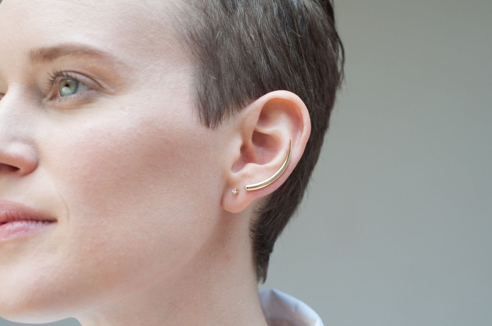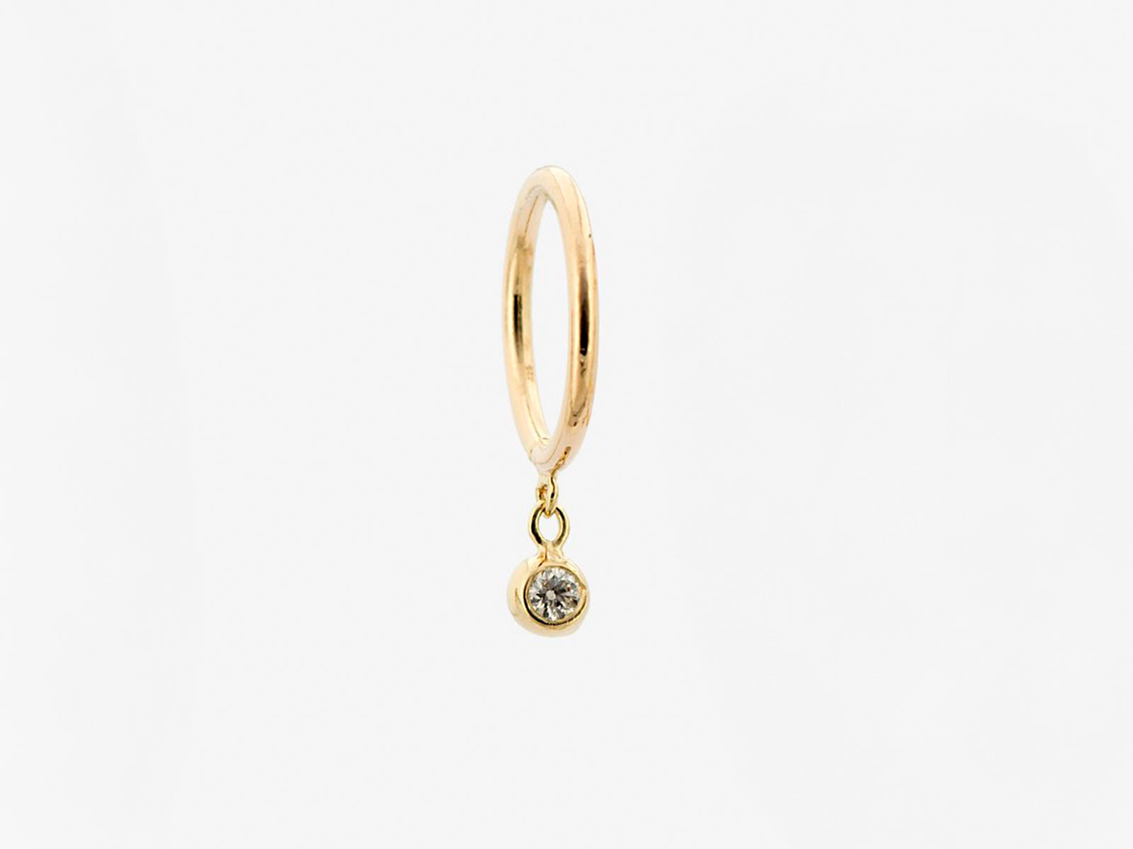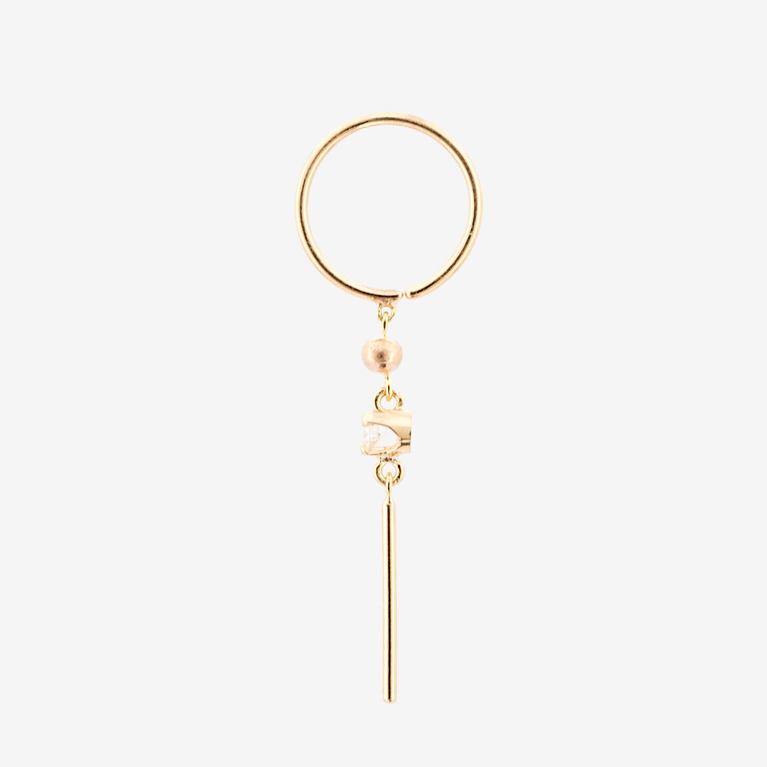14k Threader Style Hoop with Long Dangler and 2 Diamonds