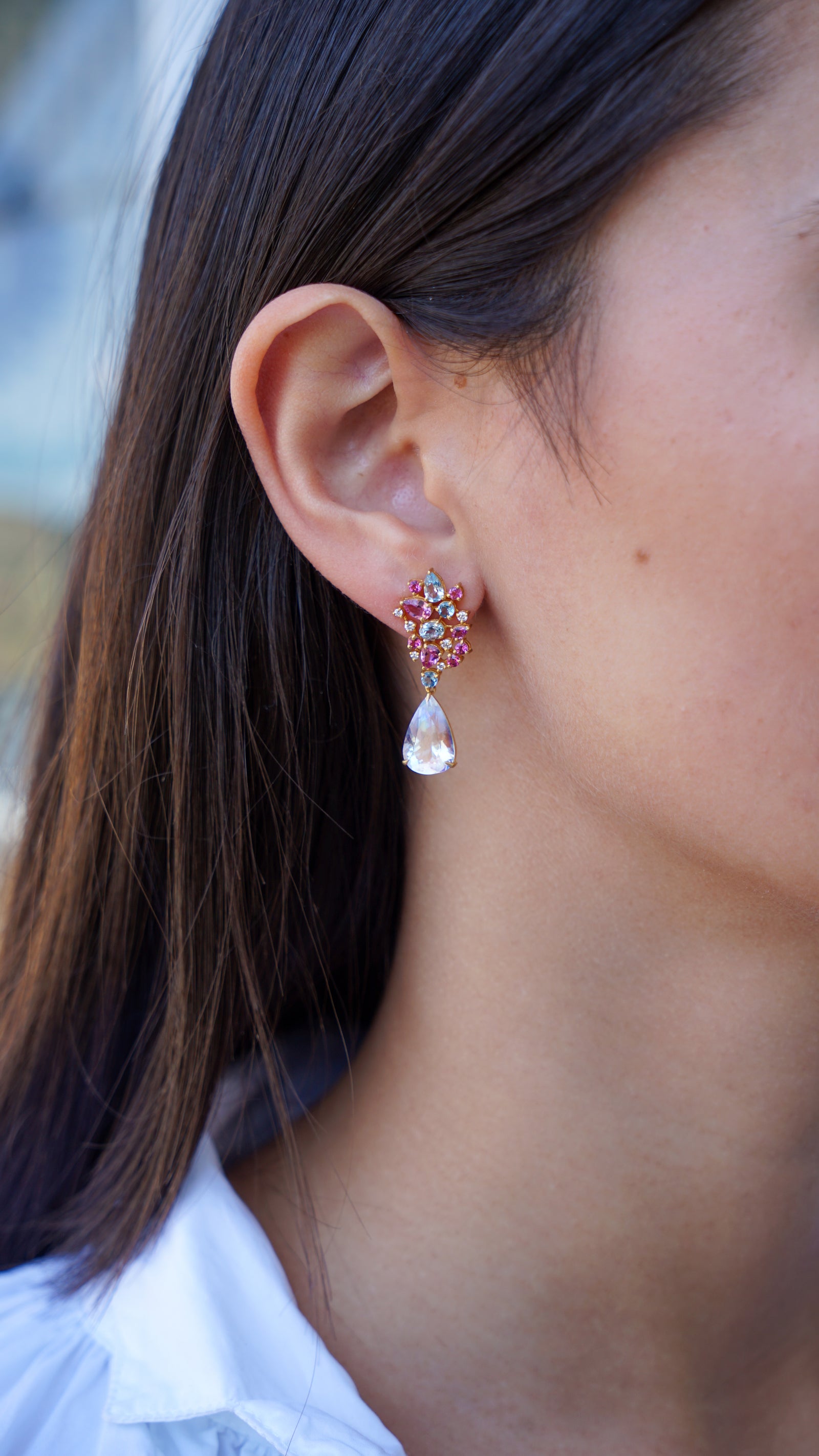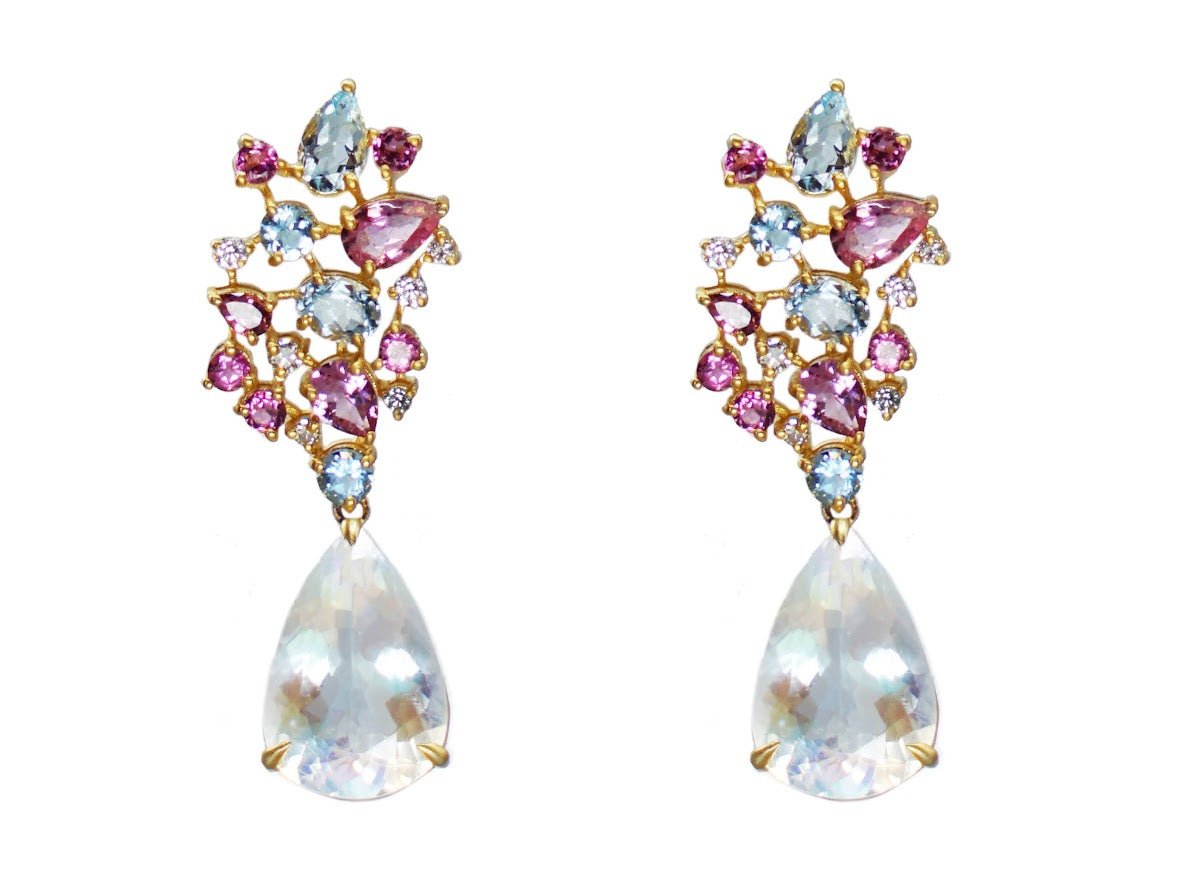 14k Moonstone, Tourmaline, and Aqua Earrings