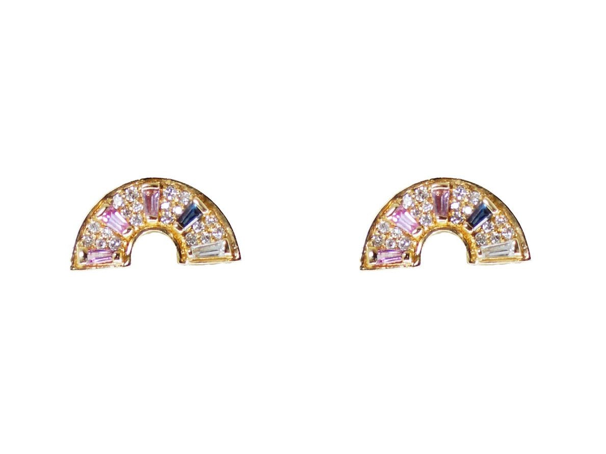 18k Half Circle Earrings with Diamonds and Sapphires