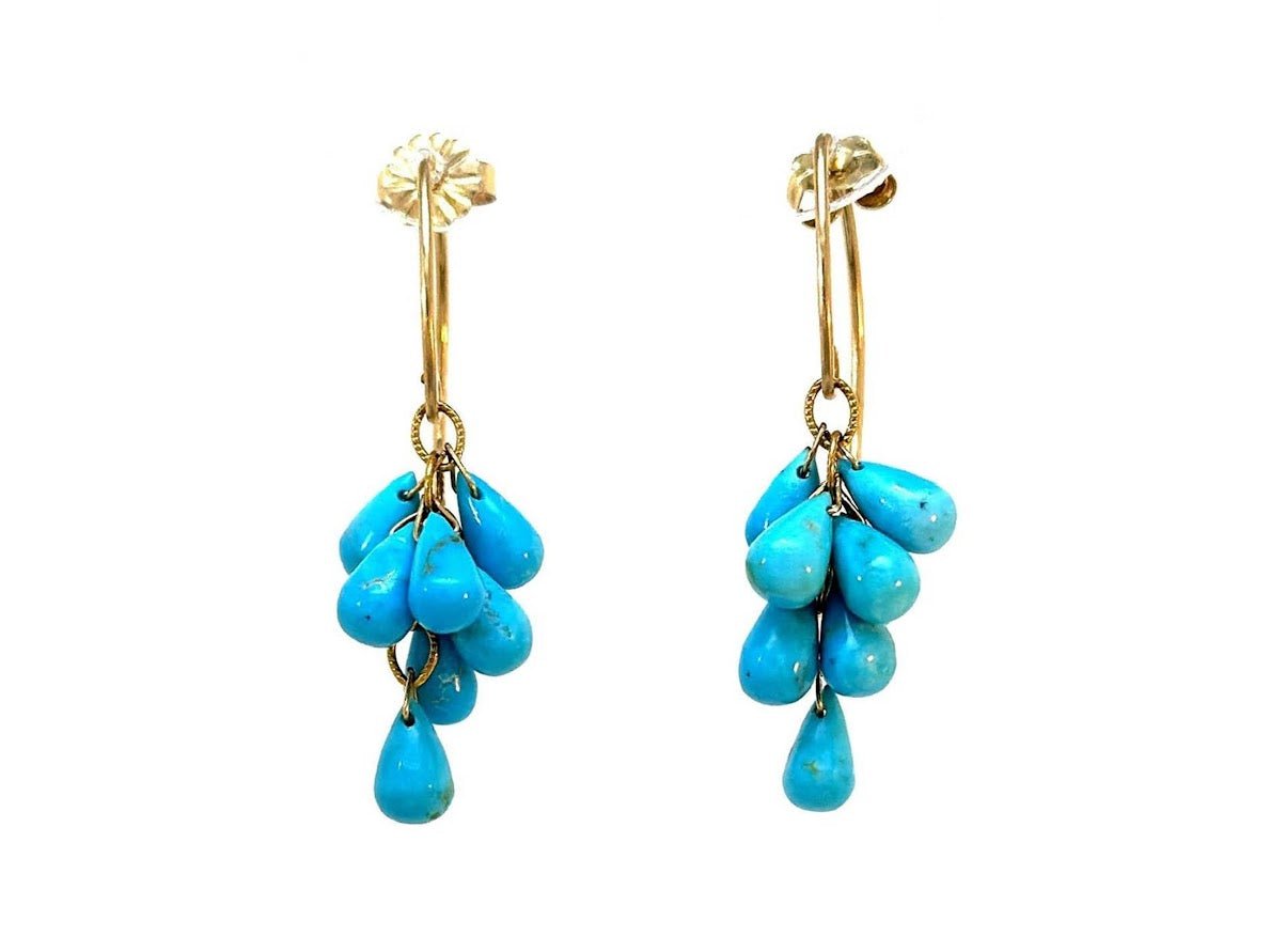 14k Turquoise Cluster Earrings