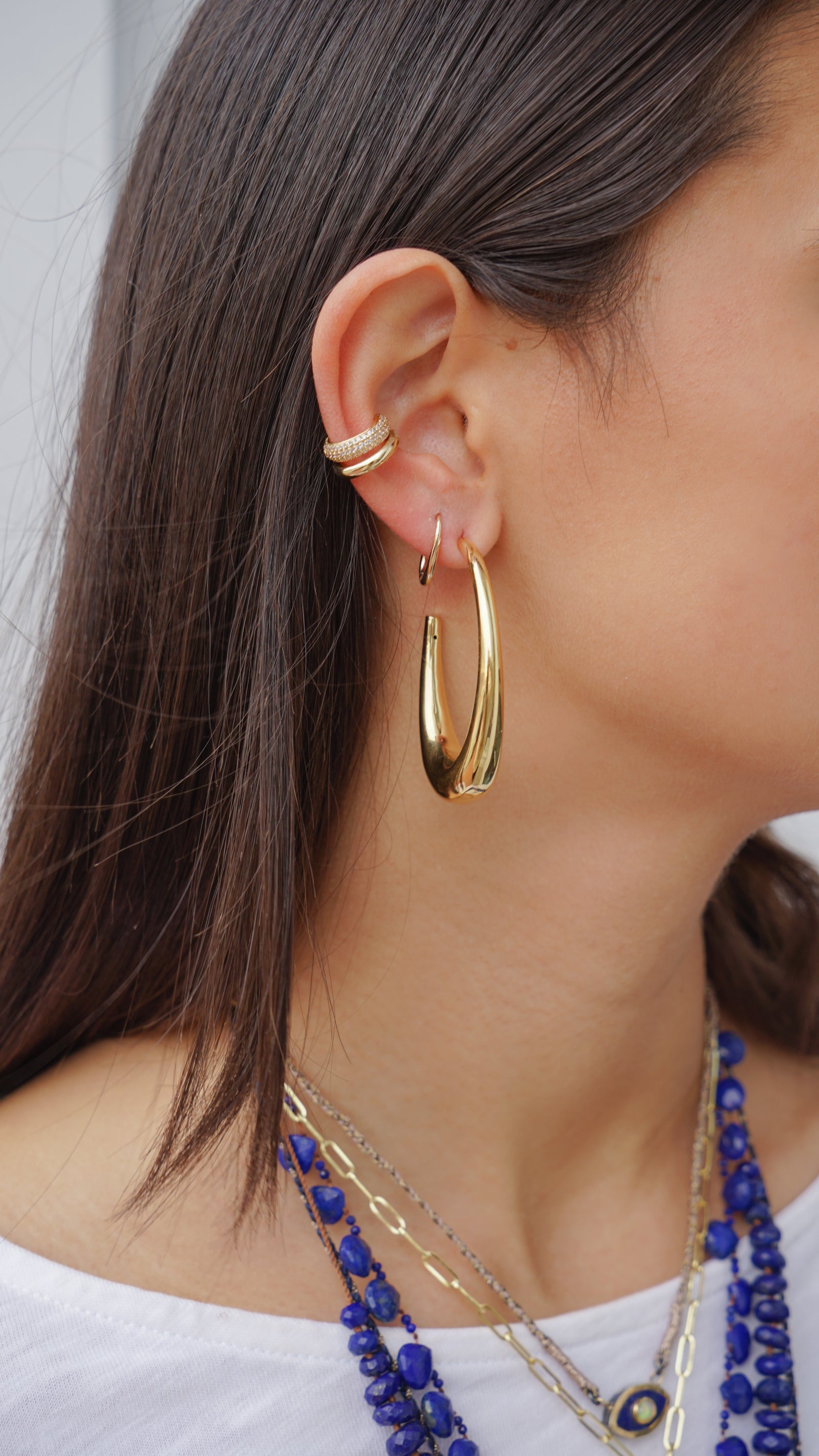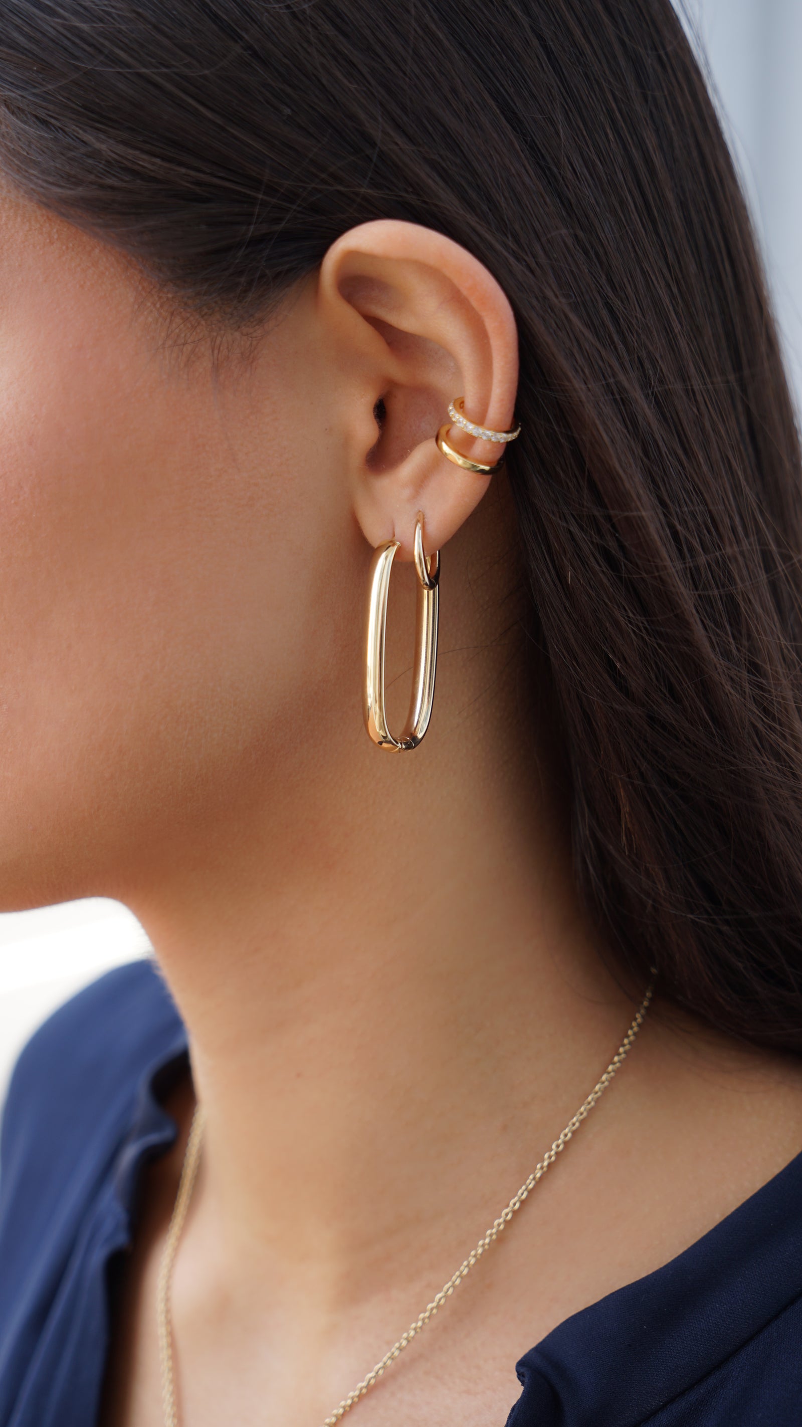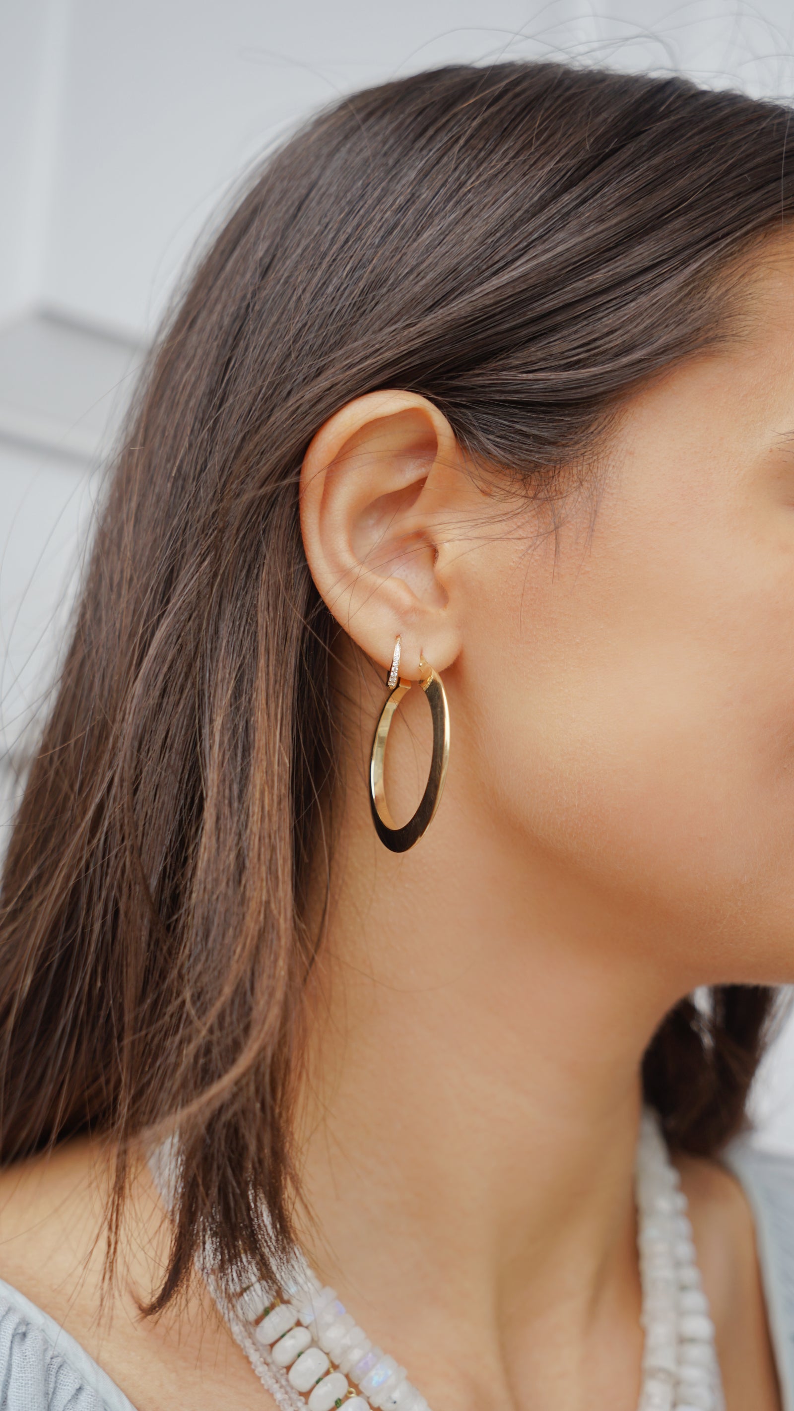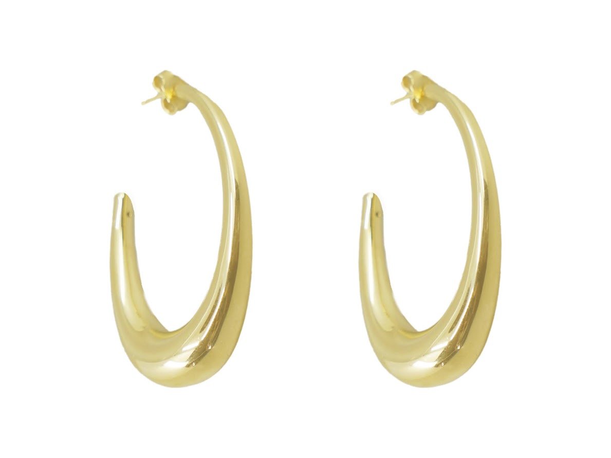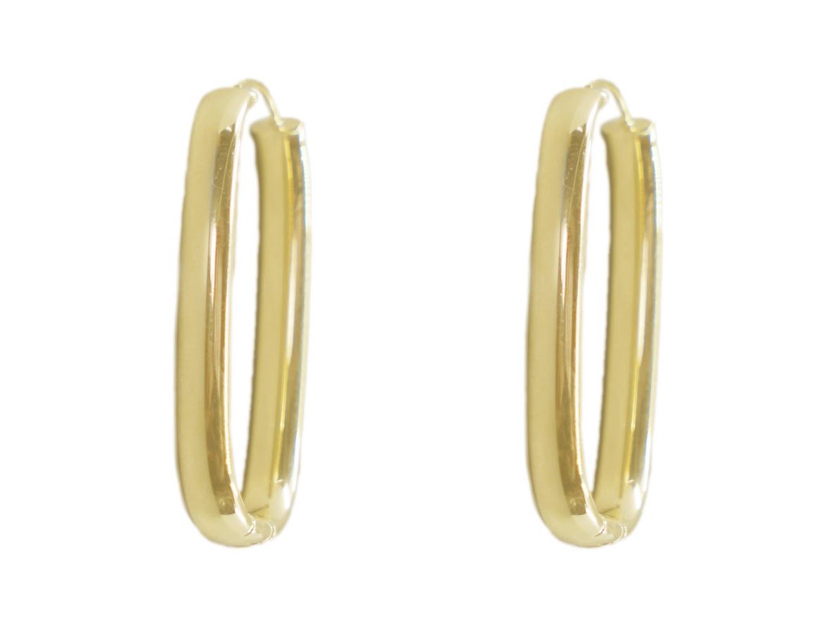 14k Elongated Oval Hoops
