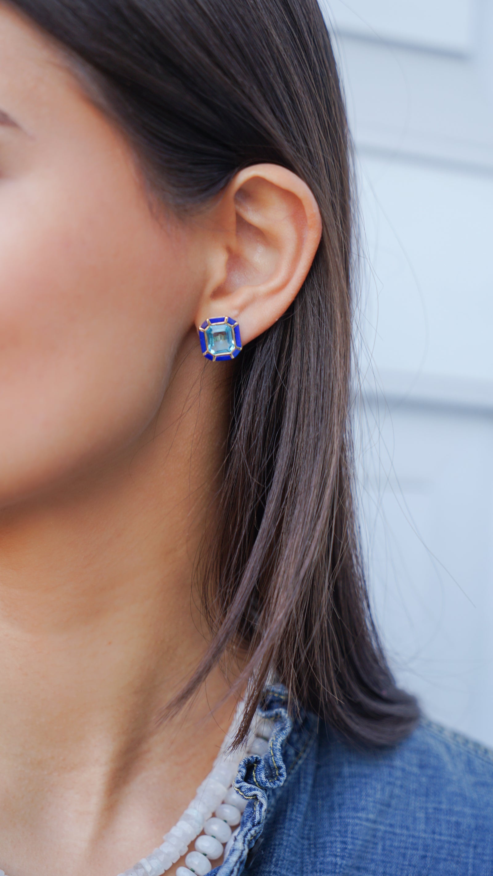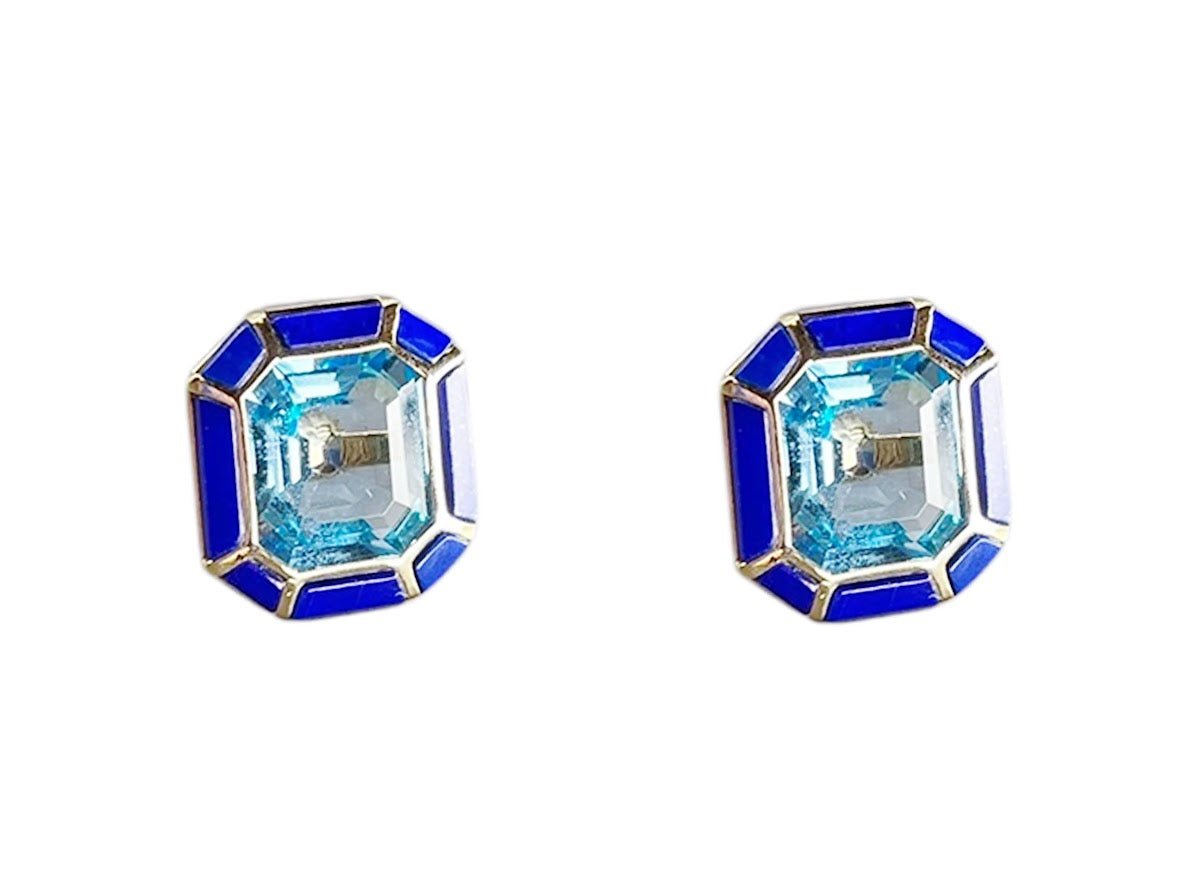 18k Earrings with Blue Topaz and Lapis
