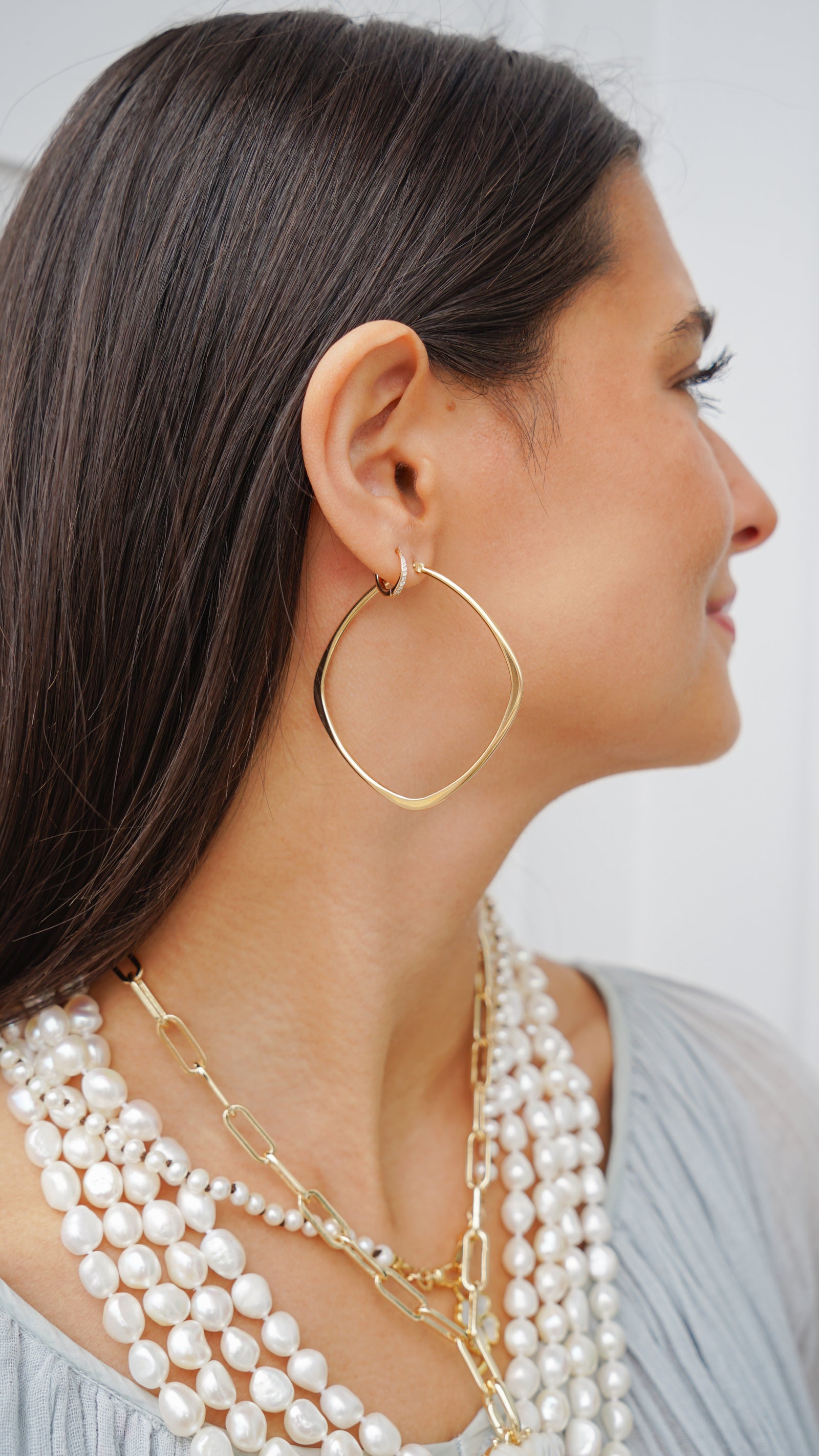 14k Large Flat Square Hoops