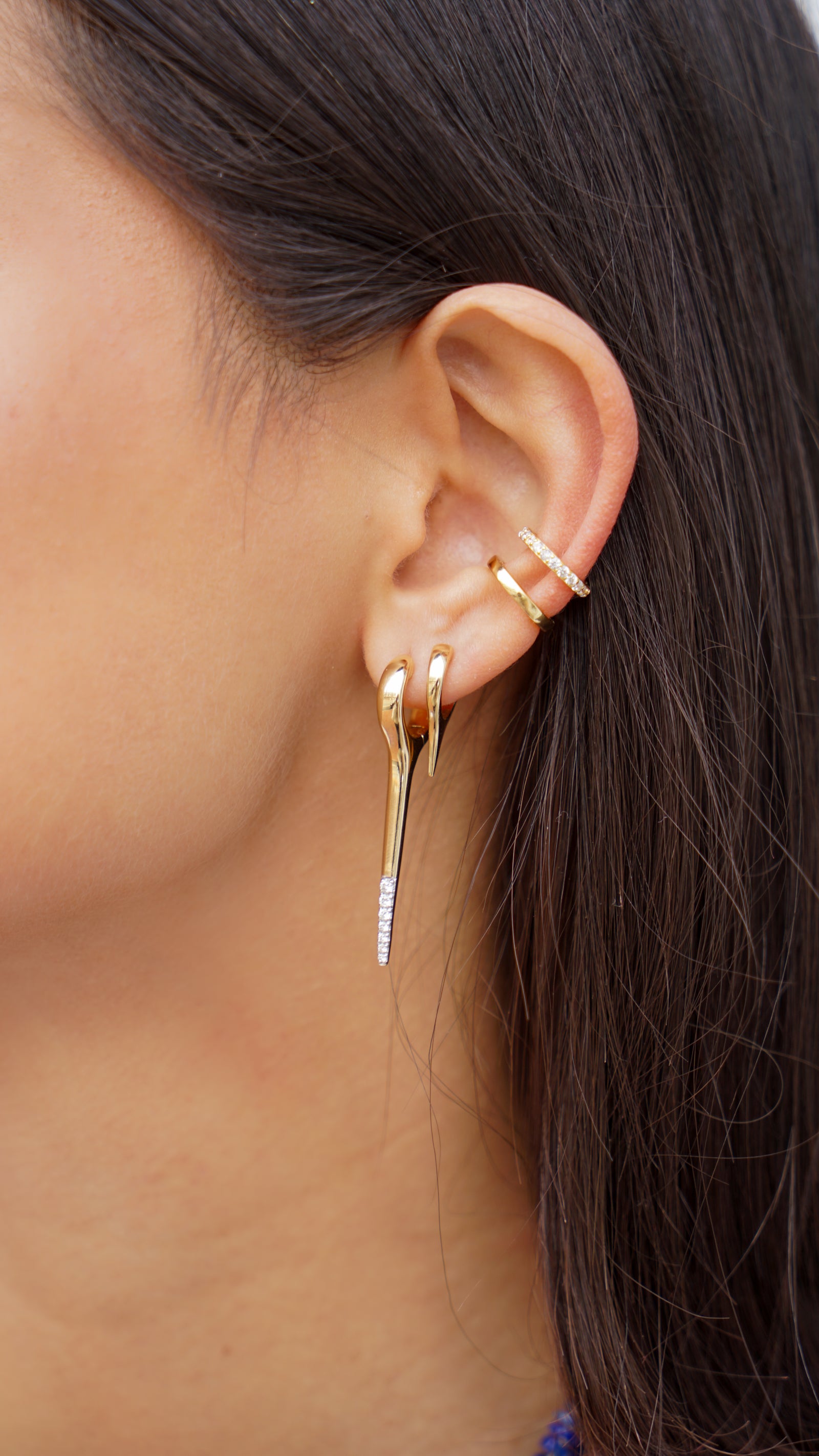 18k Line Earrings with Diamonds