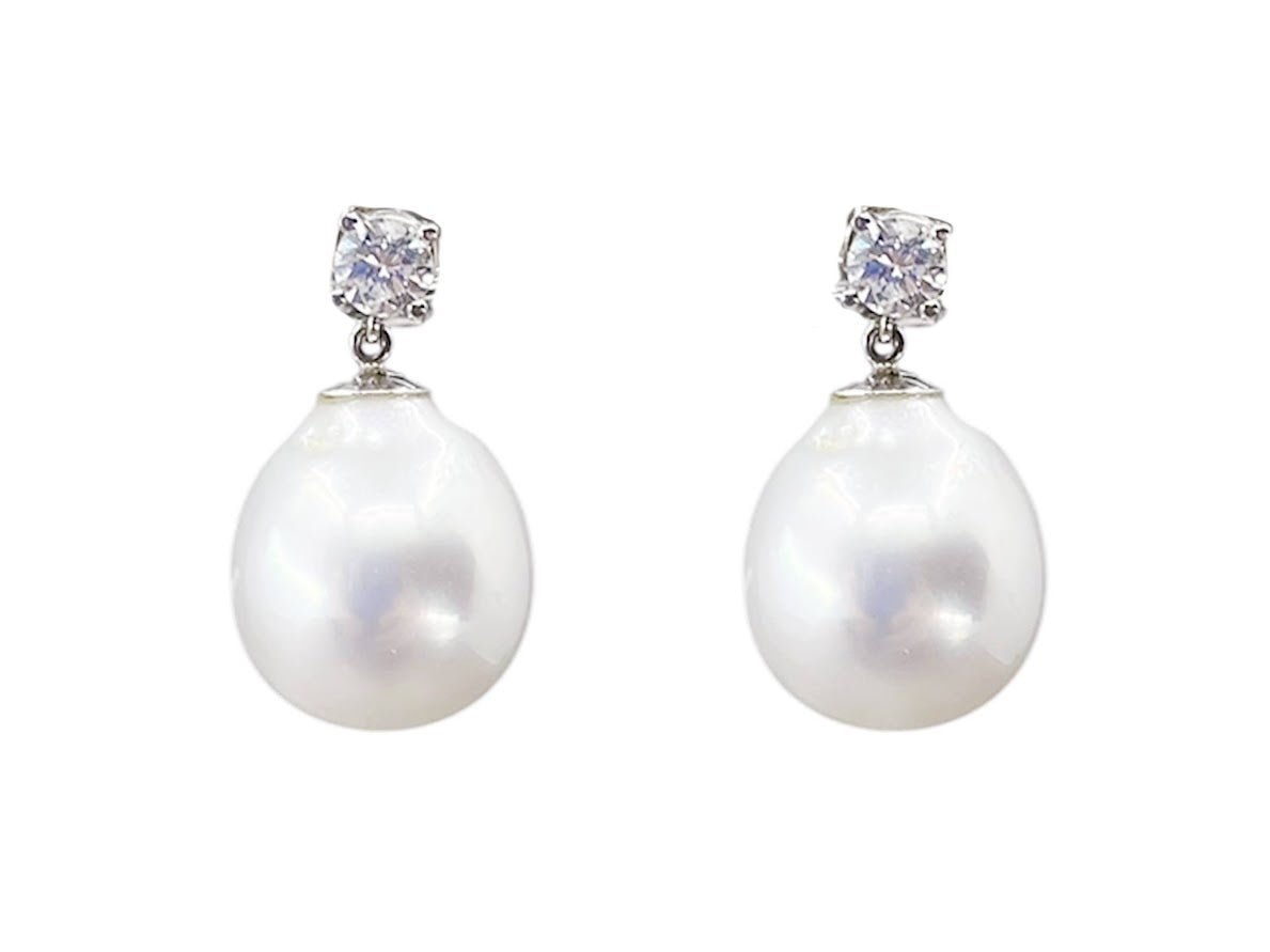 18k South Sea Pearl and Diamond Drop Earrings