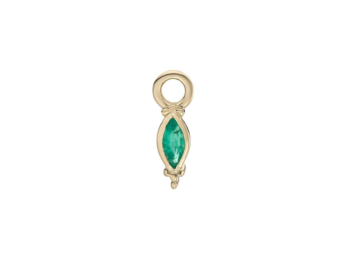 Made of 9k yellow gold, this charm features a marquise-cut emerald and measures 7mm by 2.5mm plus a 3mm loop.