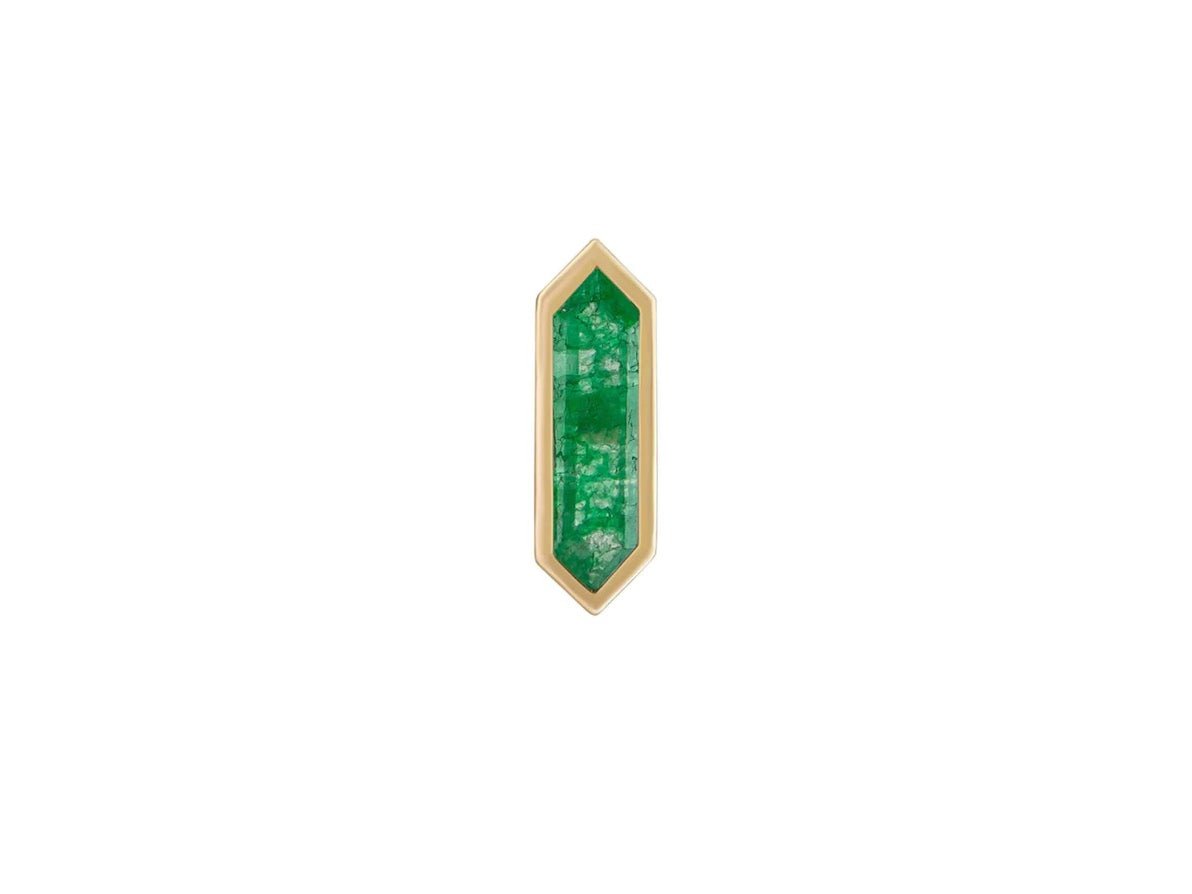 Made of 9k yellow gold, this mini hexagonal stud features a lovely green emerald quartz stone of .25ct. Butterfly back.