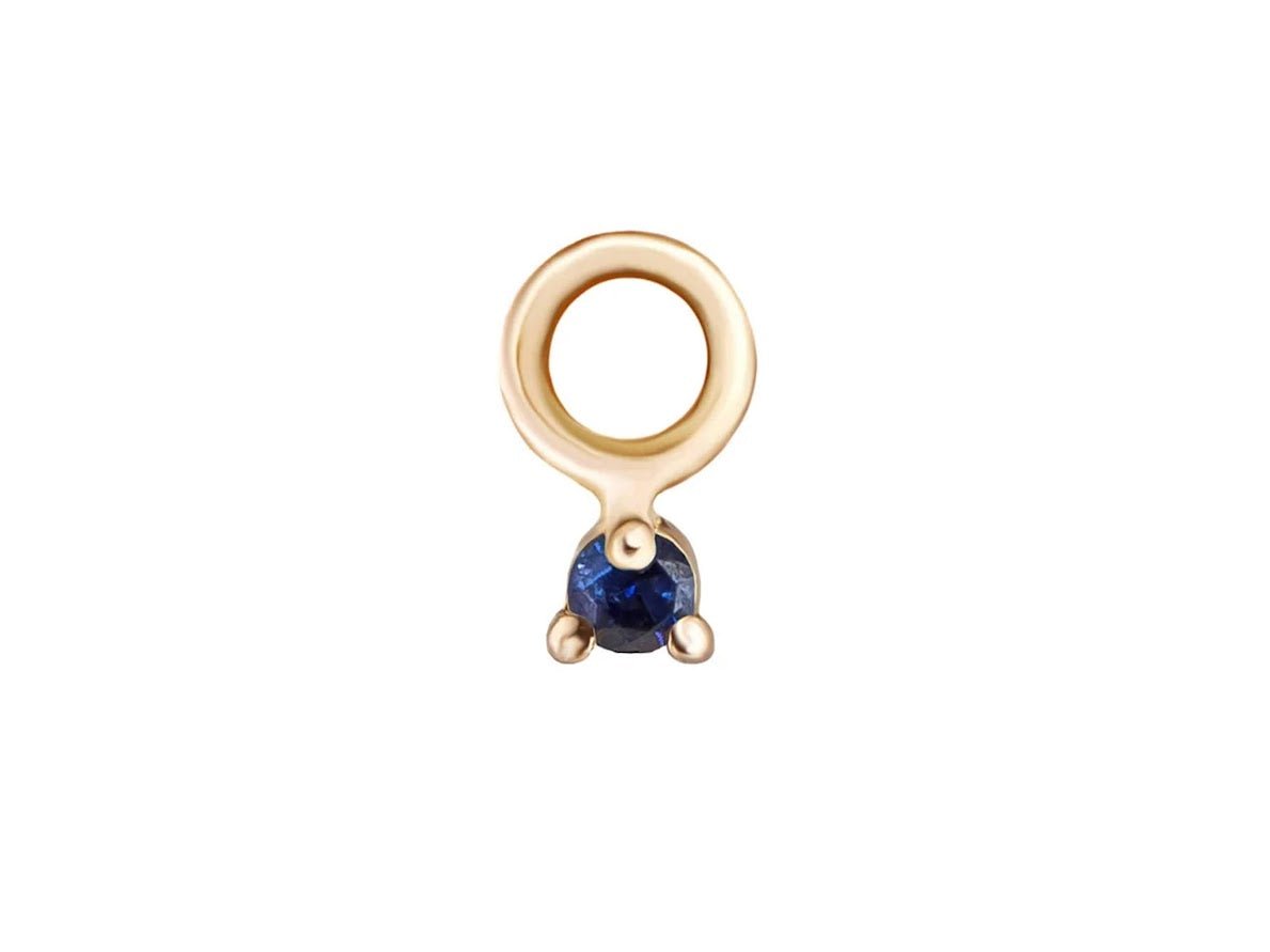 Made of 9k yellow gold, this petite ear charm features a .007ct blue sapphire and measures 1.8mm plus a 3mm loop.