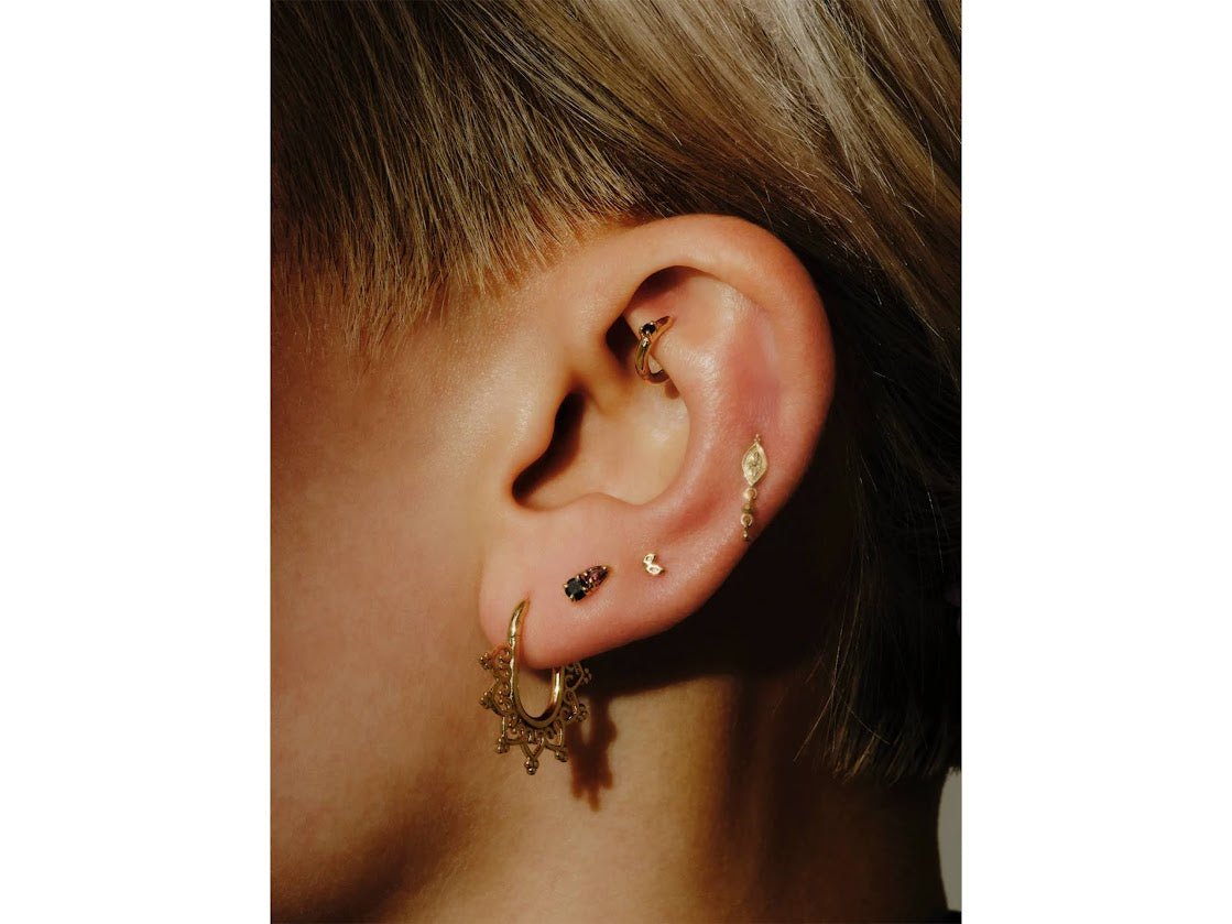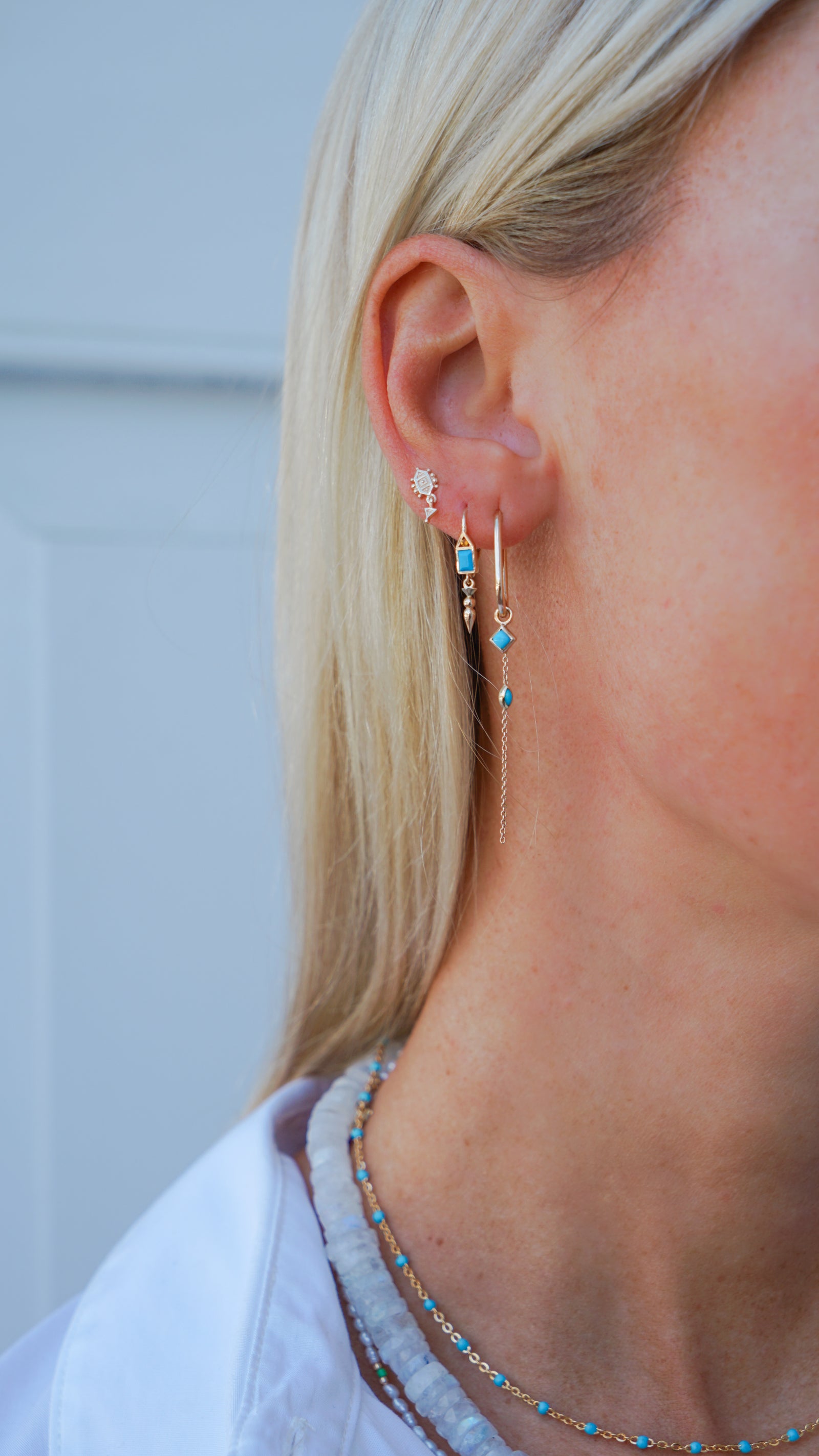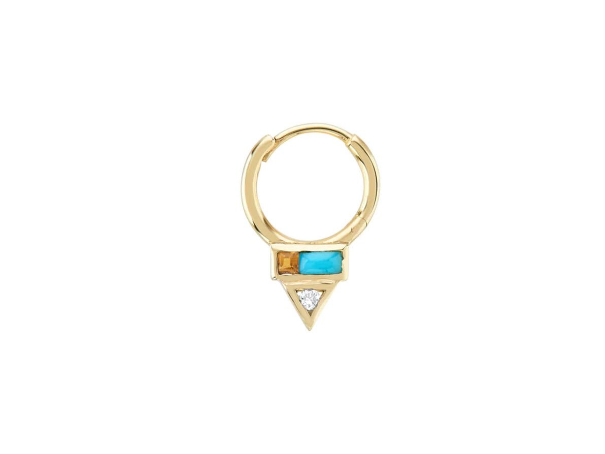 9k Right Ear Clicker Hoop with Citrine, Turquoise, and Diamond