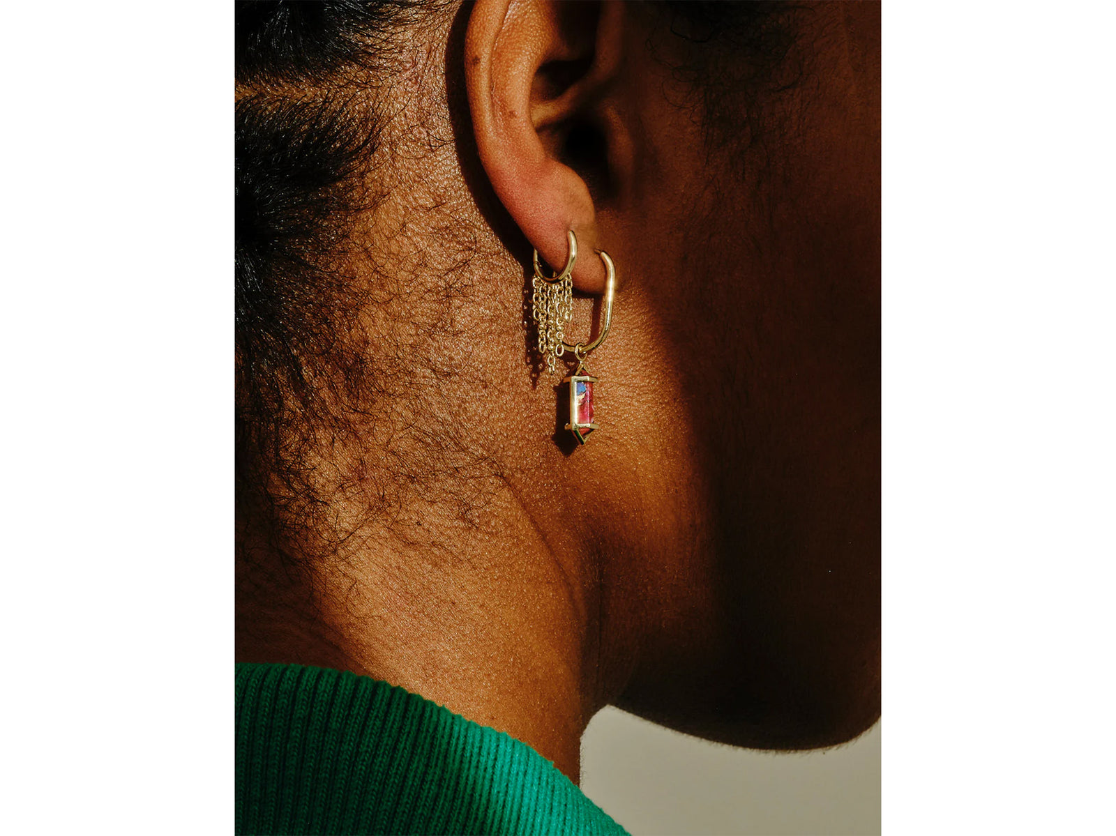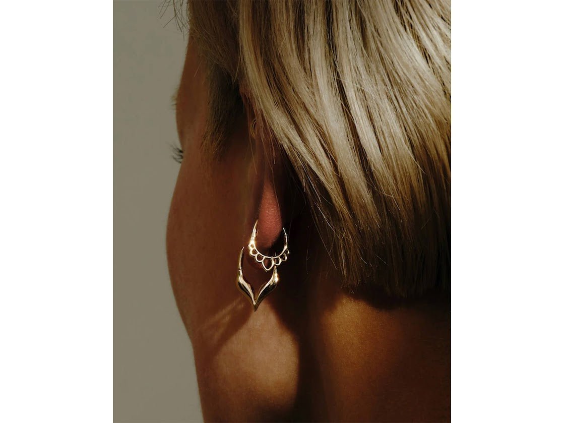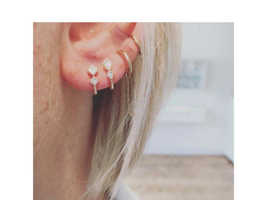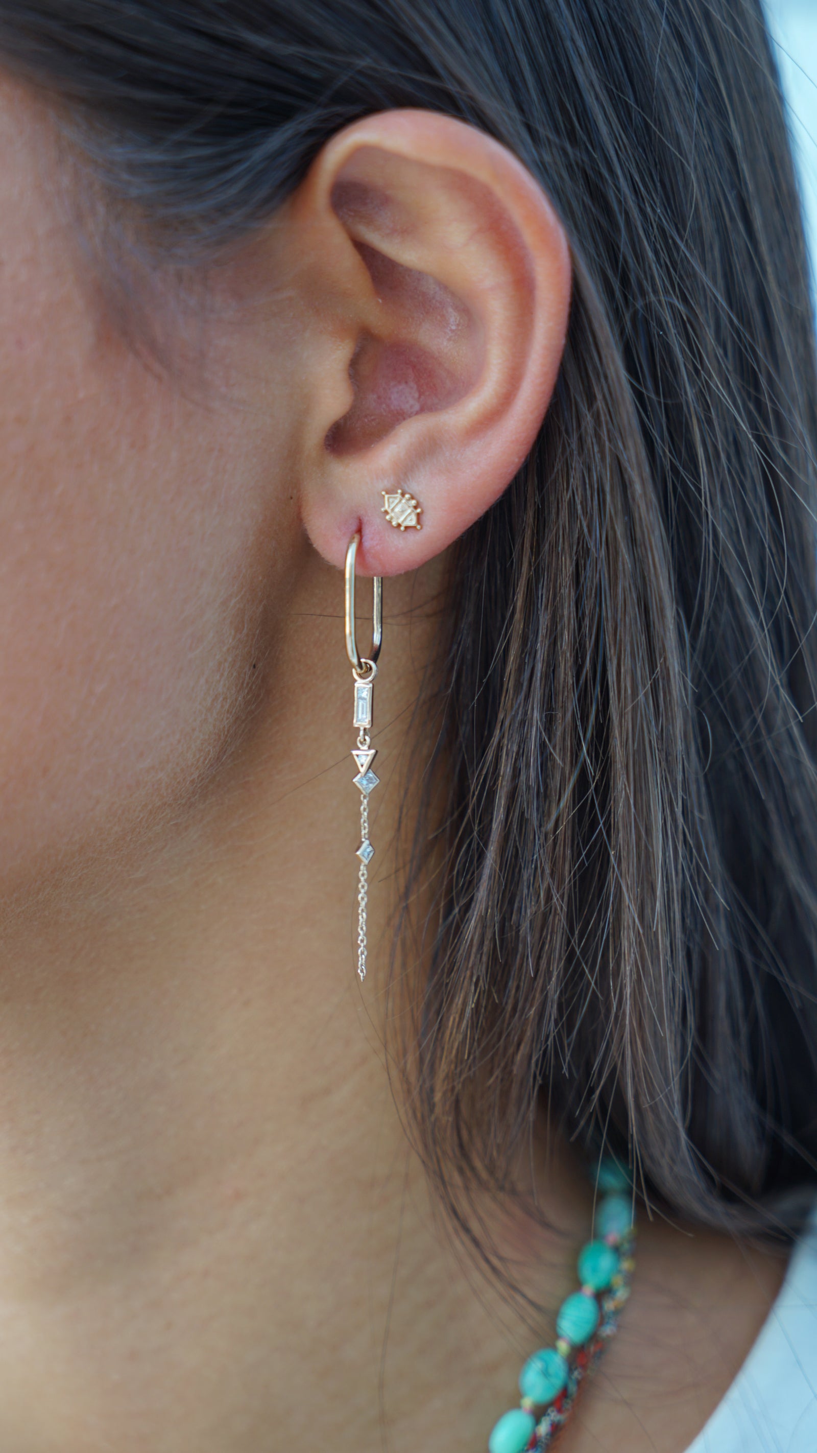 9k Double Pear-Shaped Diamond Huggie Hoop