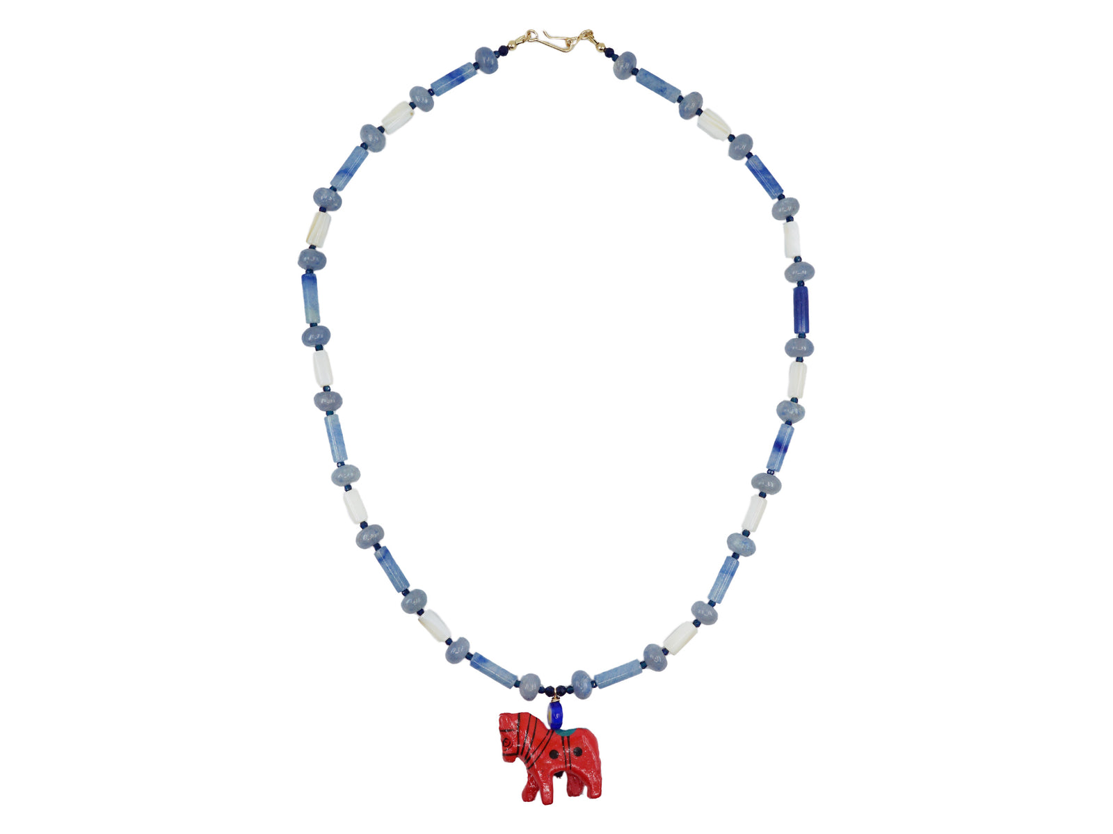 A strand of MOP and green aventurine beads features PEACE spelled out in mother of pearl letters with a mother of pearl bird and heart charm. 17 inches long. A Middlemarch exclusive, this necklace was handmade by Milne Watson in London. Clasp is 18k GF.