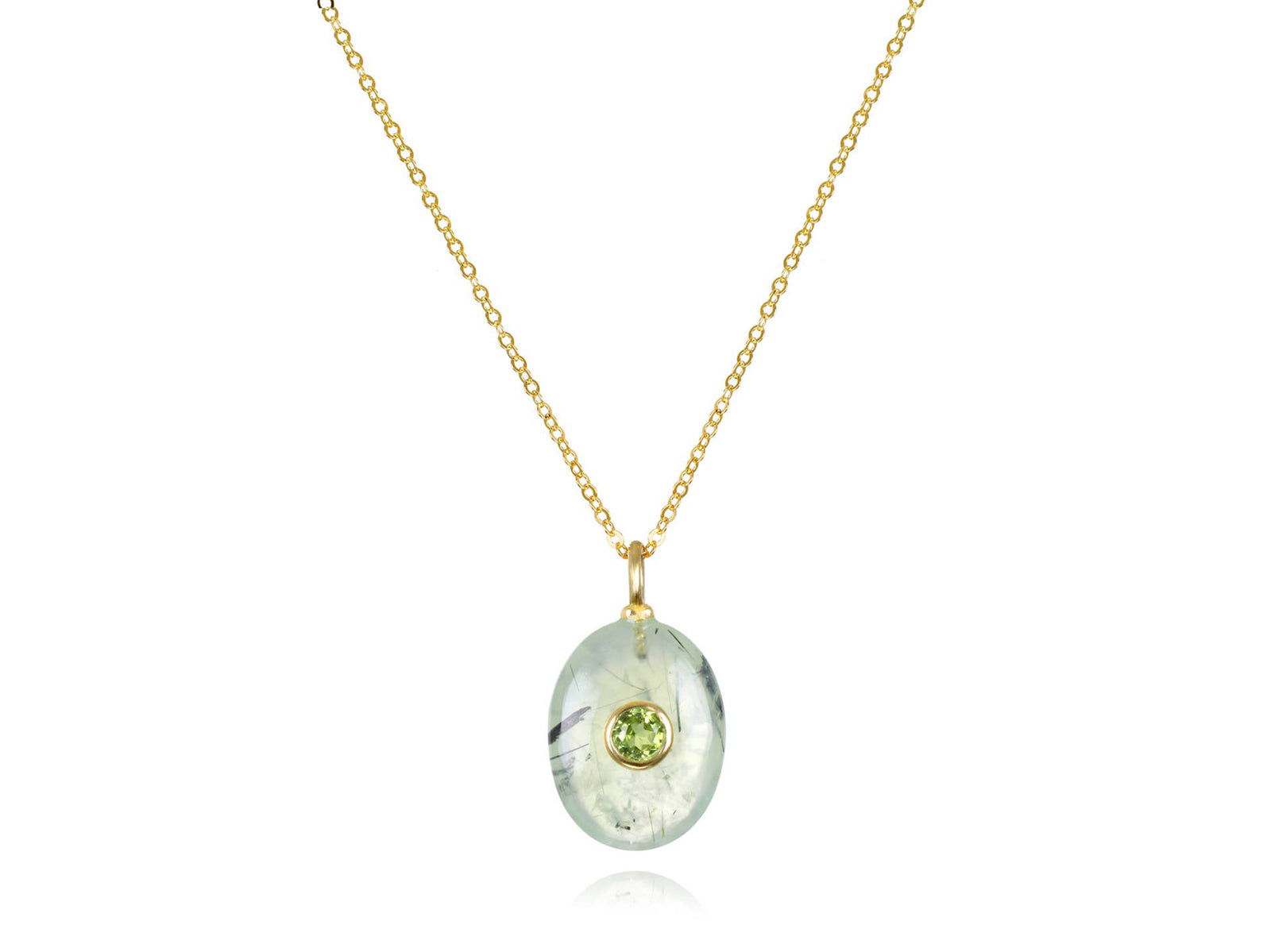 Prehnite and Peridot Oval Charm Necklace
