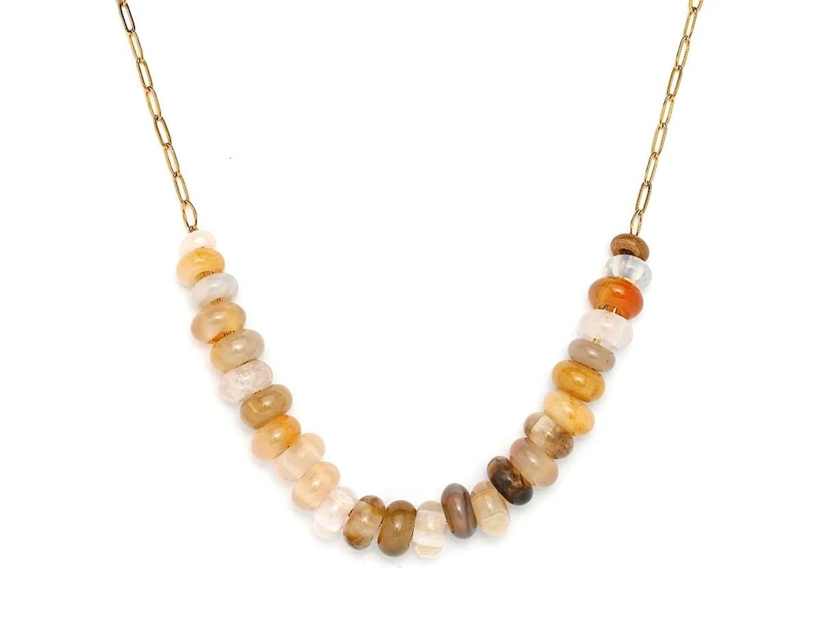 Tan Gemstone and Chain Necklace