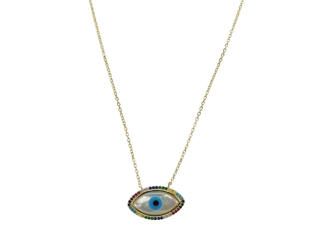 Rainbow MOP Evil Eye Necklace
