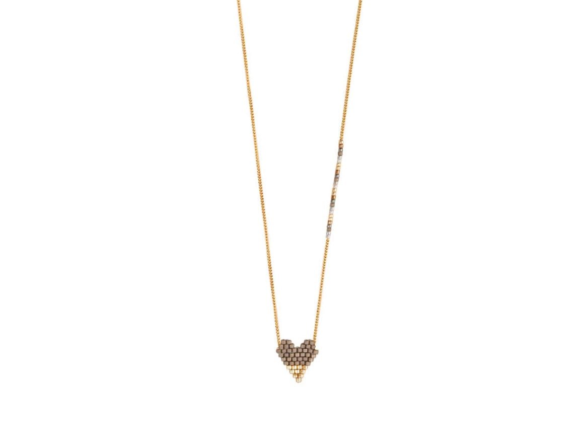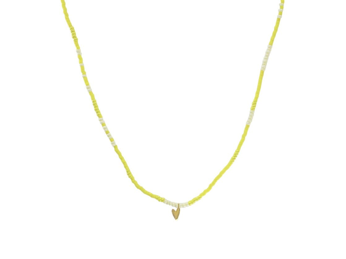 Yellow and Ivory Beaded Necklace with Heart Charm