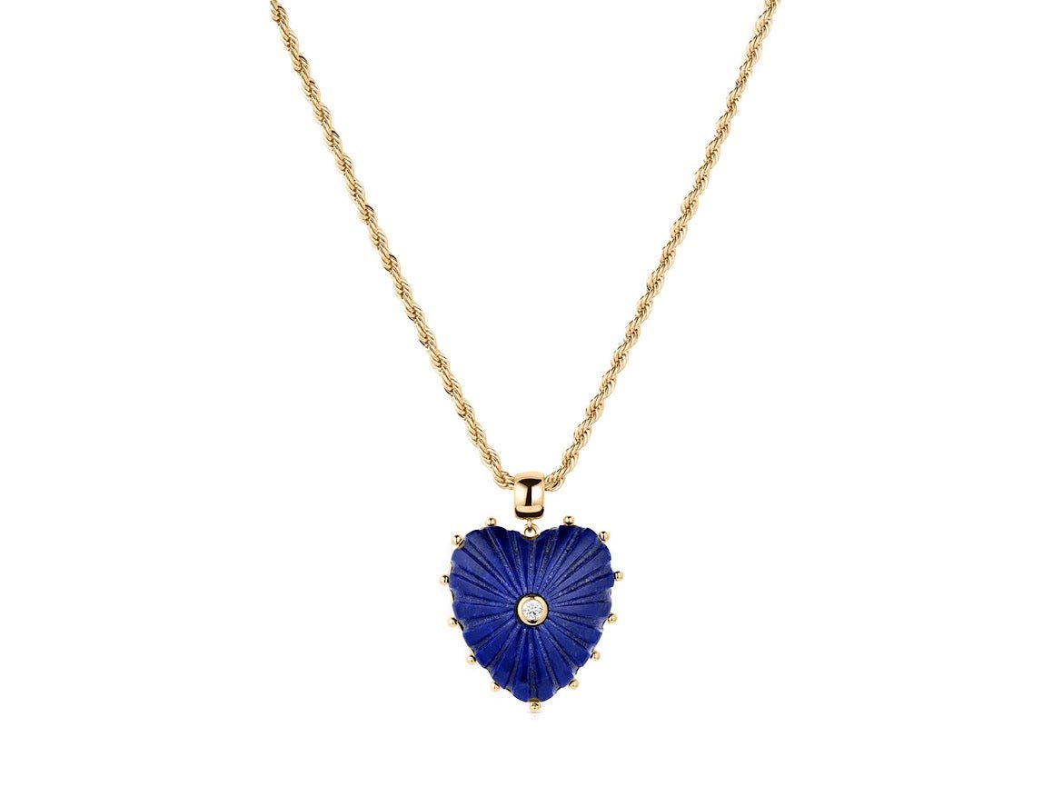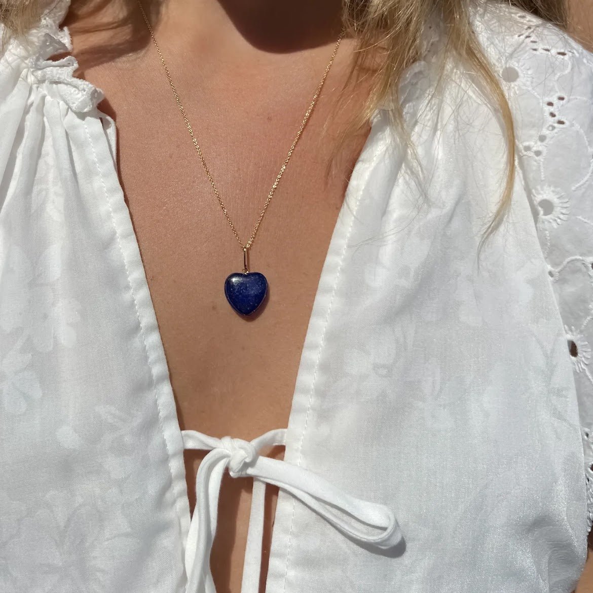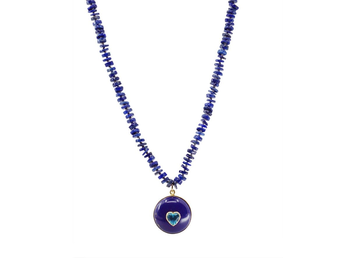 Lapis Heishi Strand Necklace with Lapis and Blue Topaz Heart