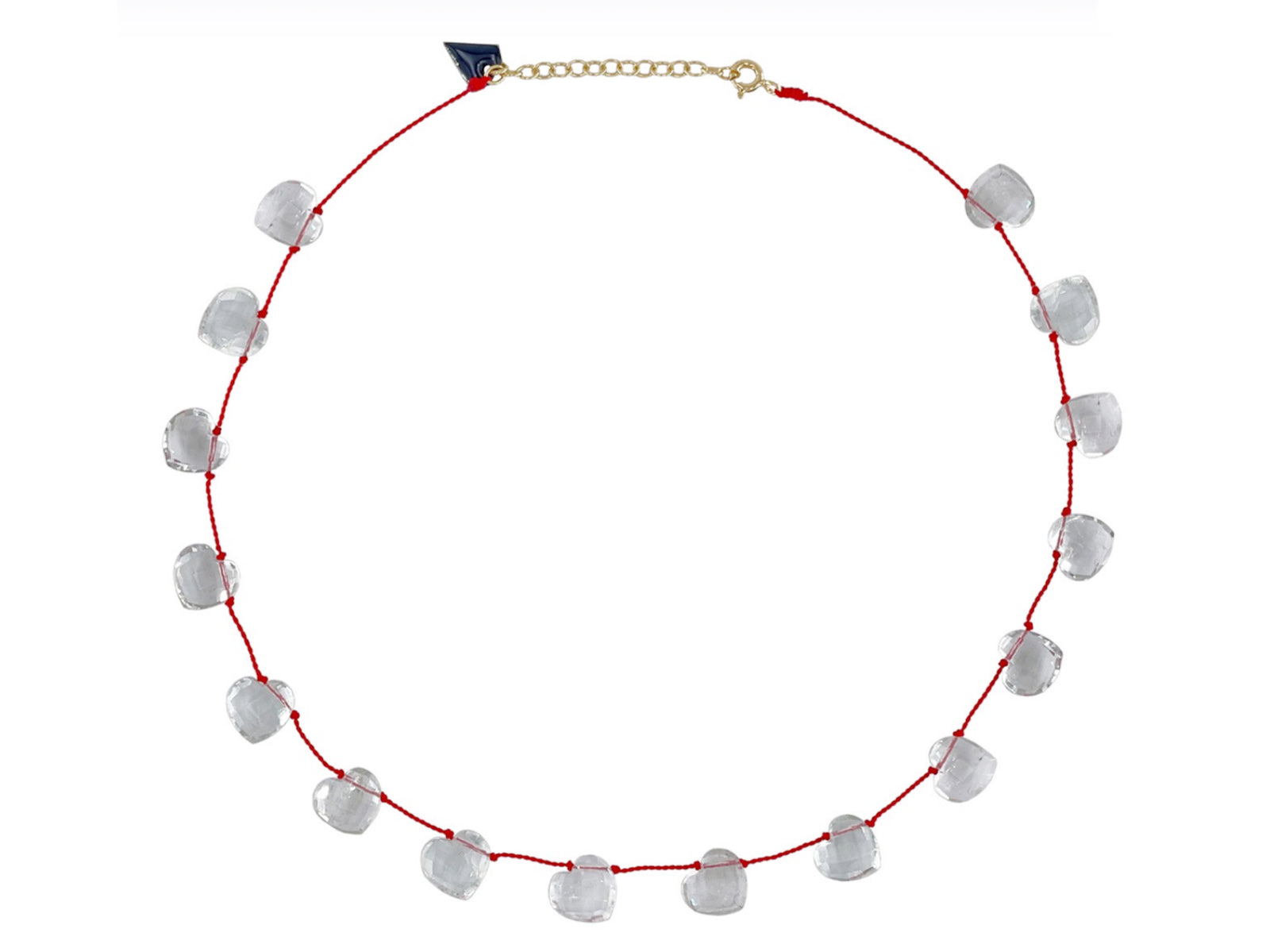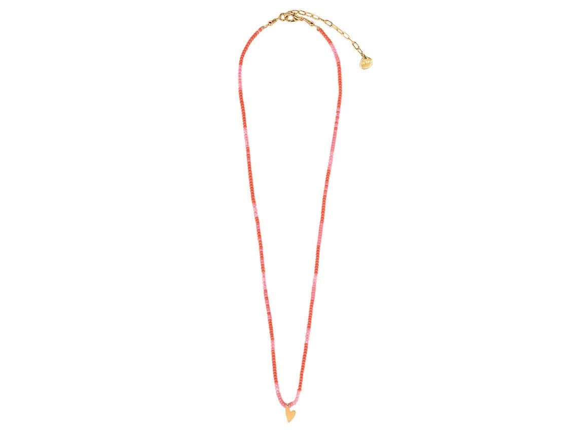 Red and Pink Beaded Necklace with Tiny Heart Charm