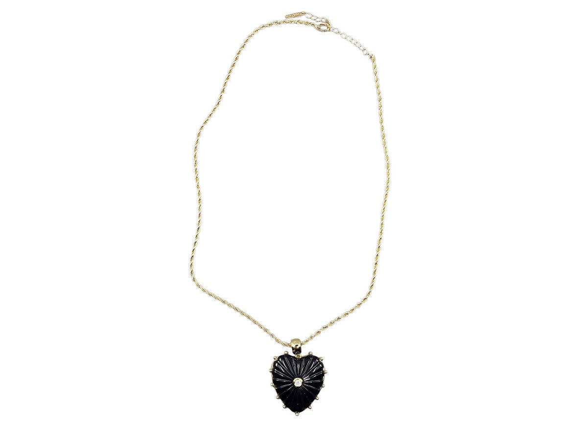 Gold Evil Eye Heart Necklace "Good Vibes Only"