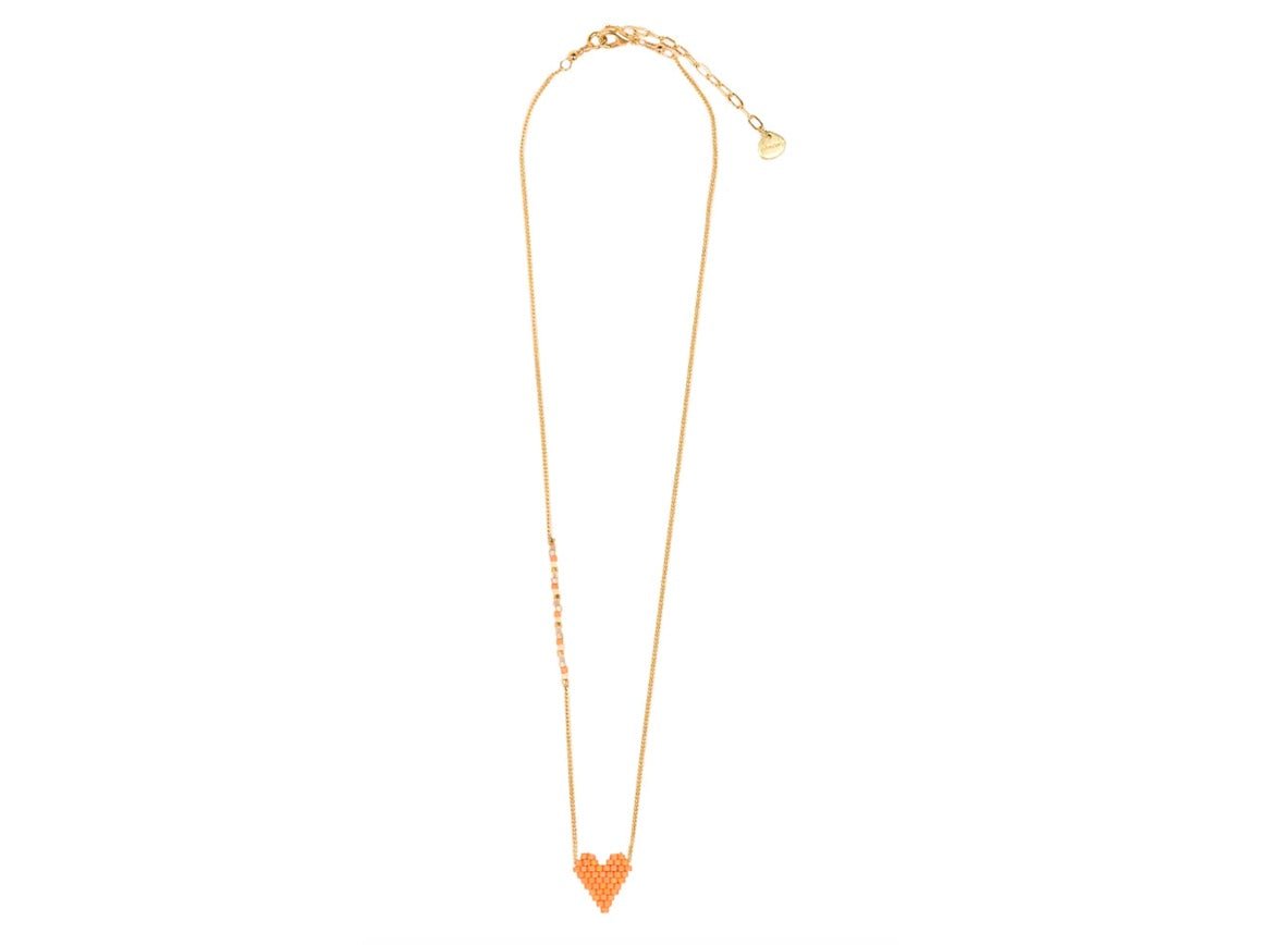Ombre Orange Beaded Necklace with Tiny Heart Charm