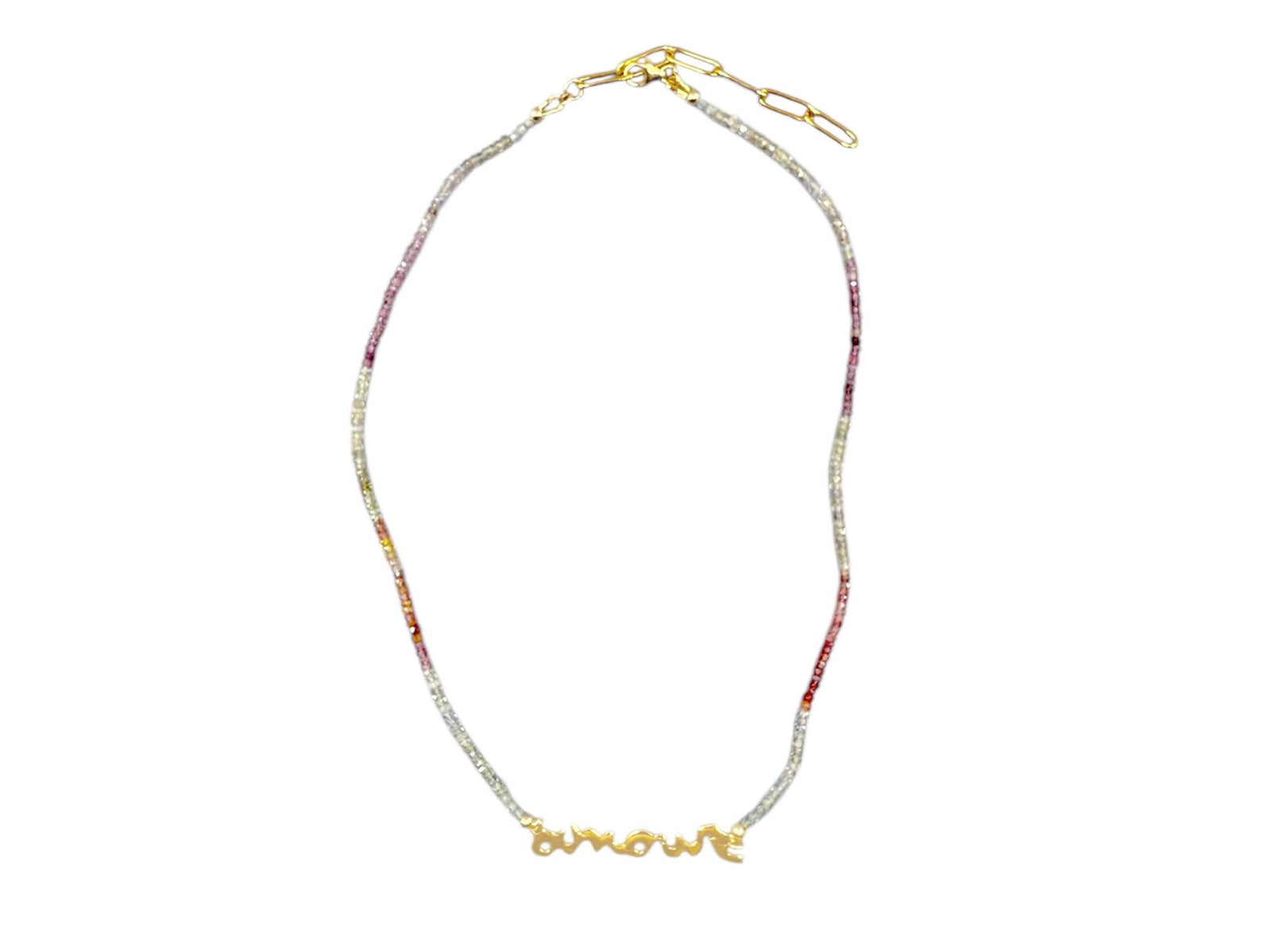 Aventurine, Tourmaline, and Carnelian Necklace with MOP DREAMER
