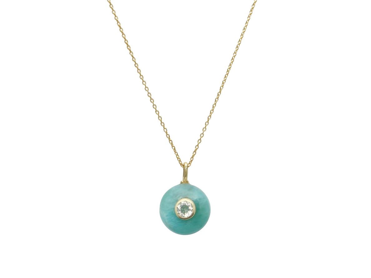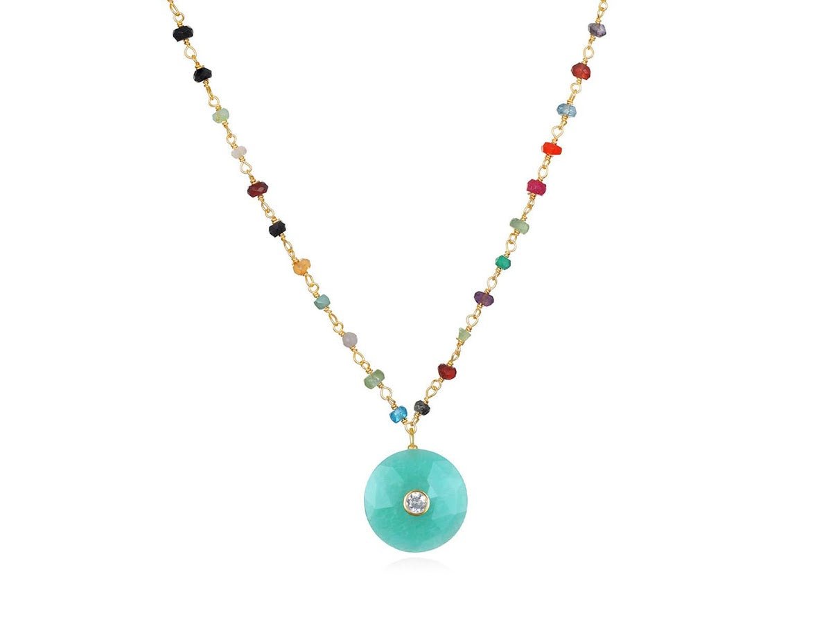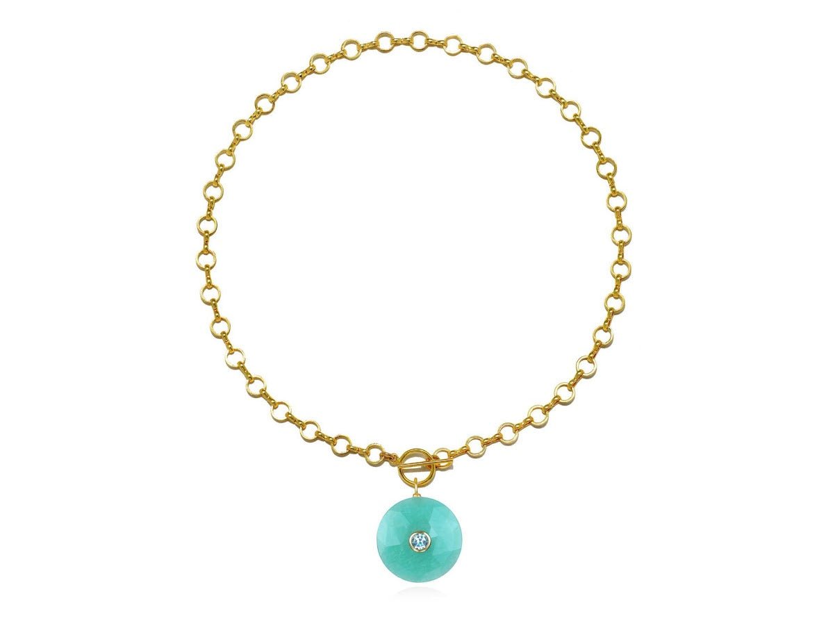 Amazonite and White Topaz Charm Necklace with Gemstone Roundels
