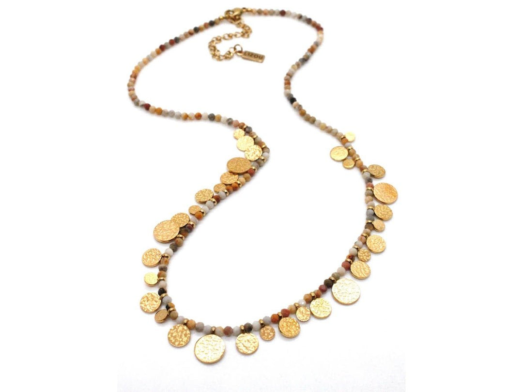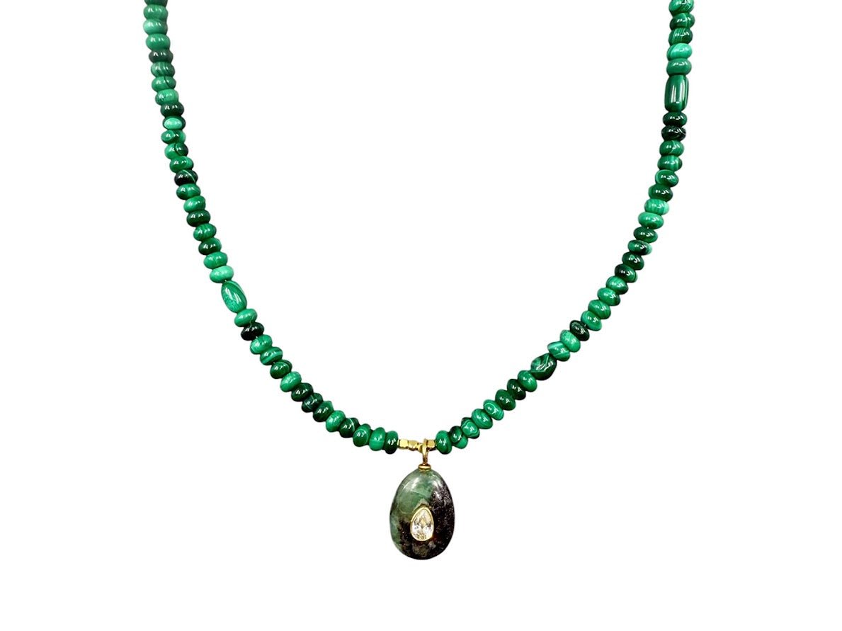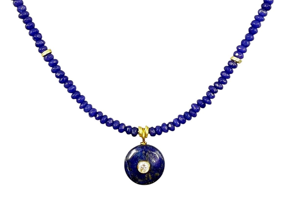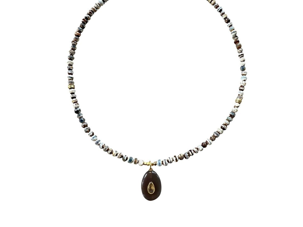 Amazonite and White Topaz Charm Necklace with Gemstone Roundels