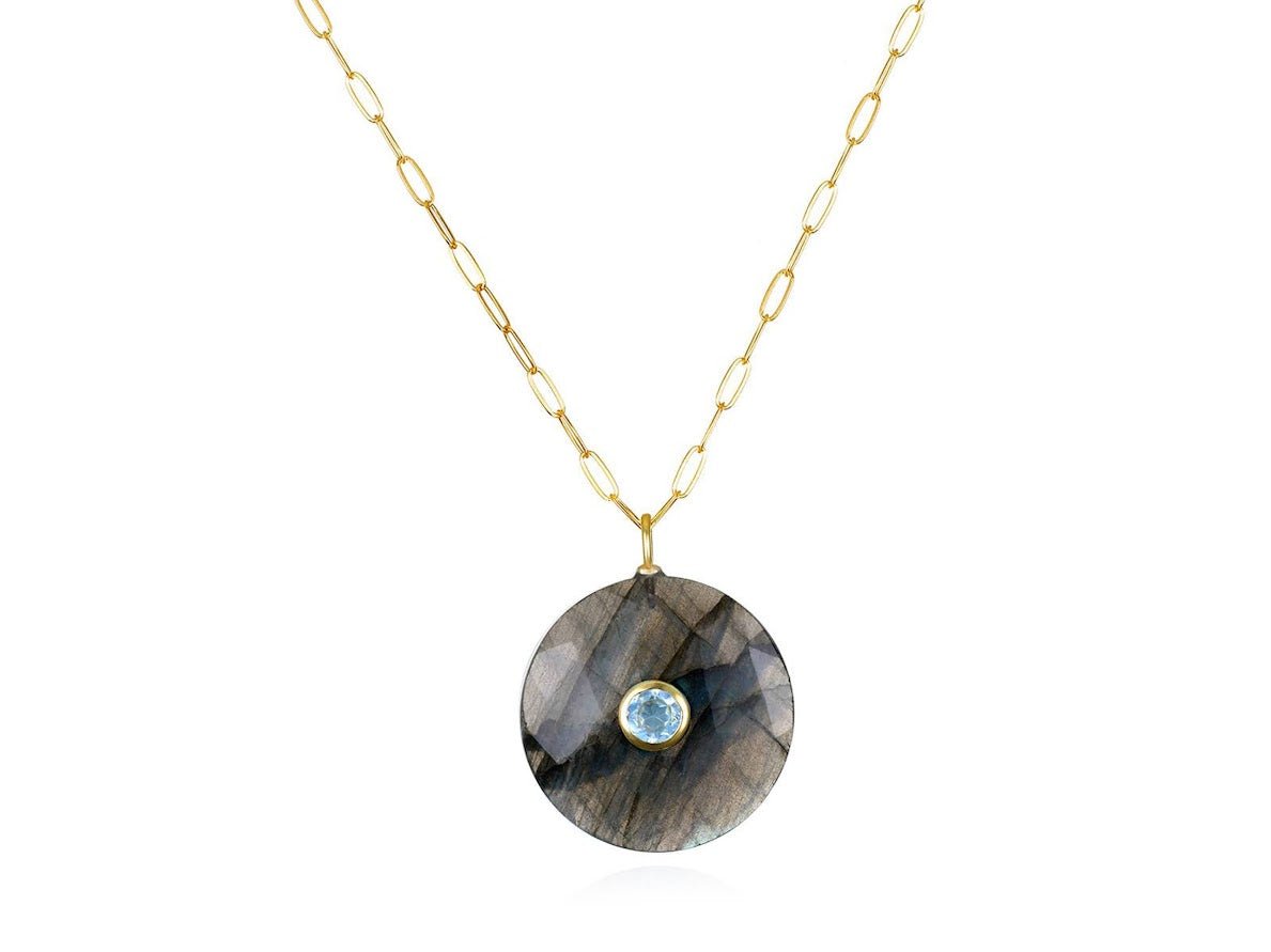 Moonstone and Sky Blue Topaz Charm Necklace in SS