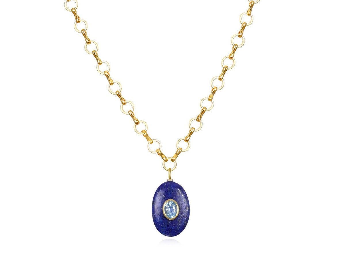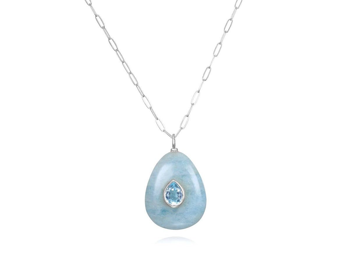 Aquamarine and Sky Blue Topaz Charm Necklace in SS