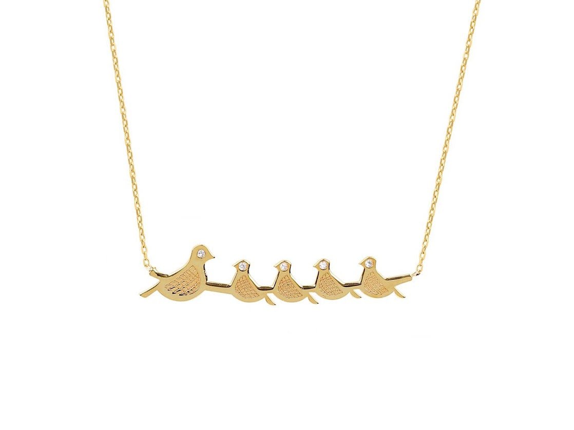 Gold Mama and 4 Baby Birds Necklace