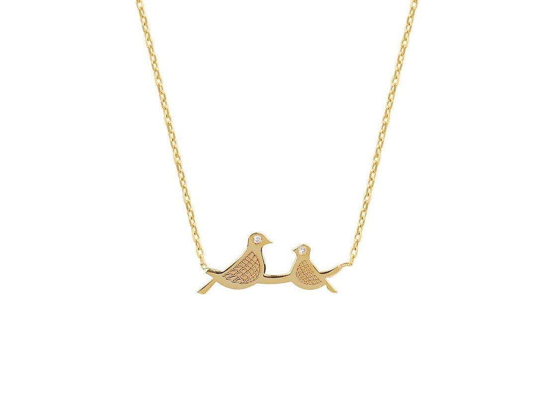Gold Mama and Baby Bird Necklace