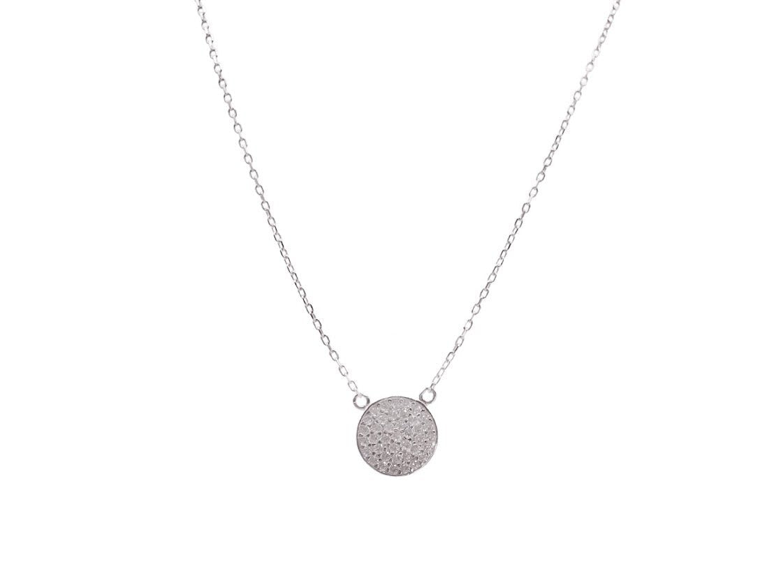 Large Silver Disc Necklace with CZs