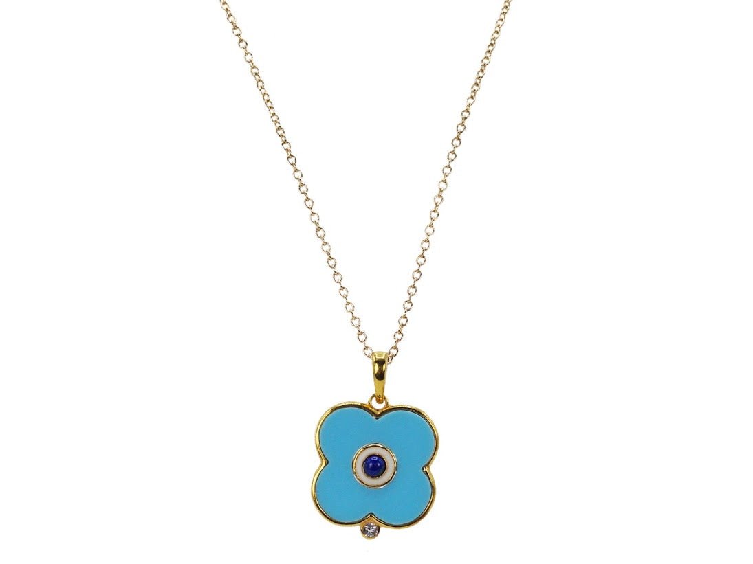 Turquoise Clover/Abstract Evil Eye Charm Necklace